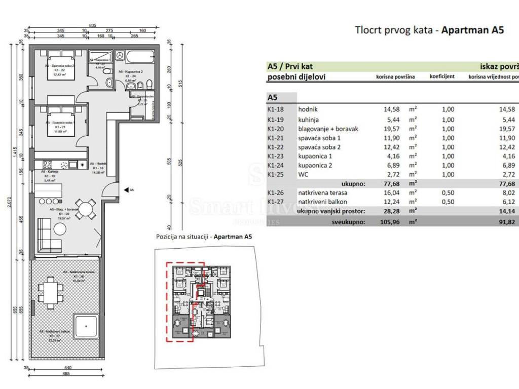 WOHNUNG A5 befindet sich im 1. Stock, hat eine Bruttofläche von 108,23 m2.