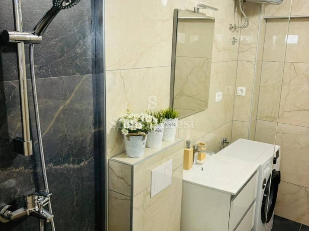 Die Wohnung besteht aus einem Wohnzimmer mit Küche und Esszimmer, einem Schlafzimmer und einem Badezimmer.