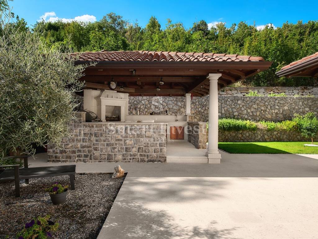 In ruhiger und exklusiver Lage nahe dem Meer, unweit des ACI Yachthafens Ičići und des luxuriösen Hotelkomplexes Opatija Marriott Resort & Spa, befindet sich eine Luxusvilla von höchster Qualität. Diese elegante Residenz mit makellos gestaltetem Interieur und freiem Blick auf das Meer und die Inseln bietet eine einzigartige Kombination aus Luxus, Komfort und modernster Technologie und wurde für all jene geschaffen, die Wert auf Qualität und Stil legen.