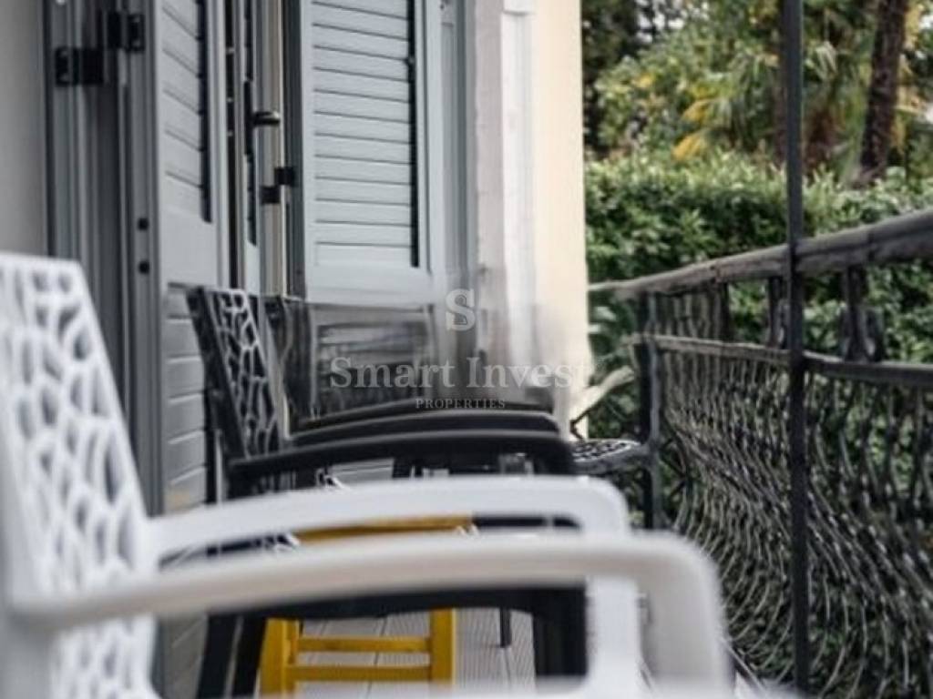 Die Wohnung ist nach Süden ausgerichtet, mit Blick auf das Meer und den Park, und liegt weniger als 100 Meter vom Meer entfernt.