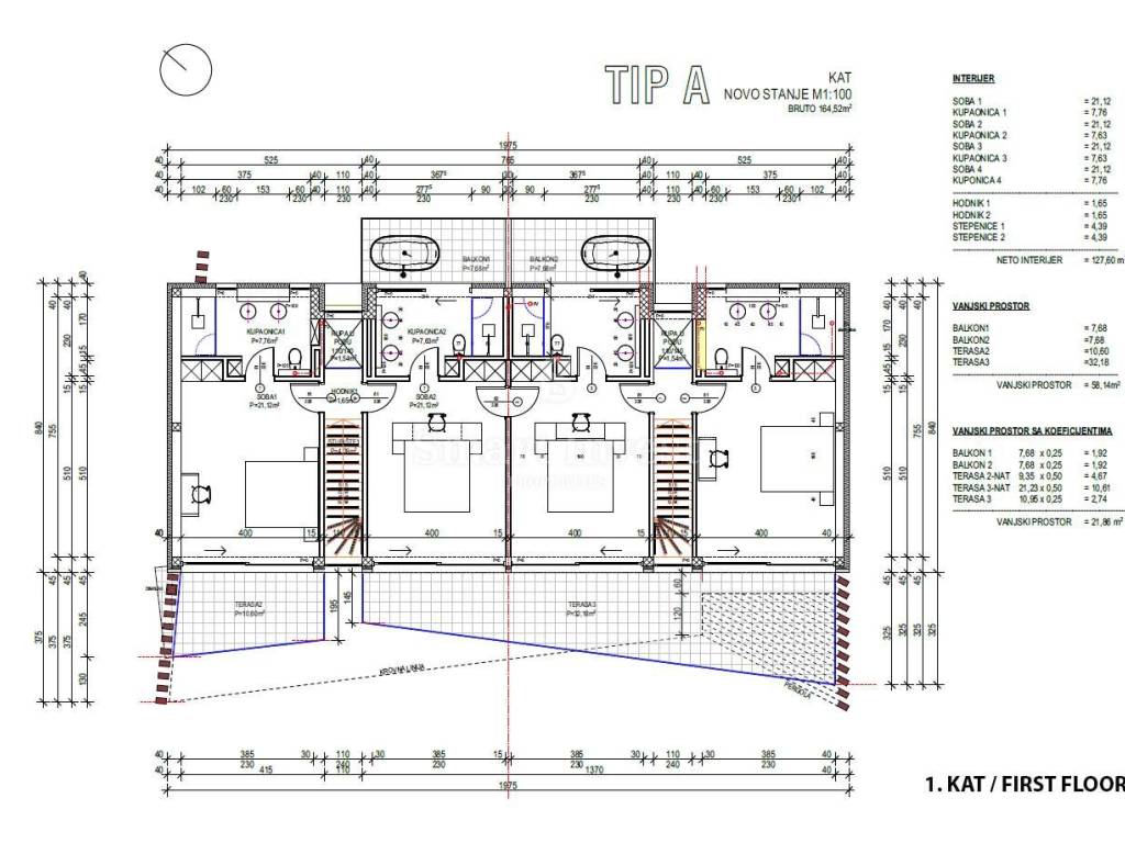 Nettowohnfläche + Balkone, überdachte und nicht überdachte Terrassen: 467 m2