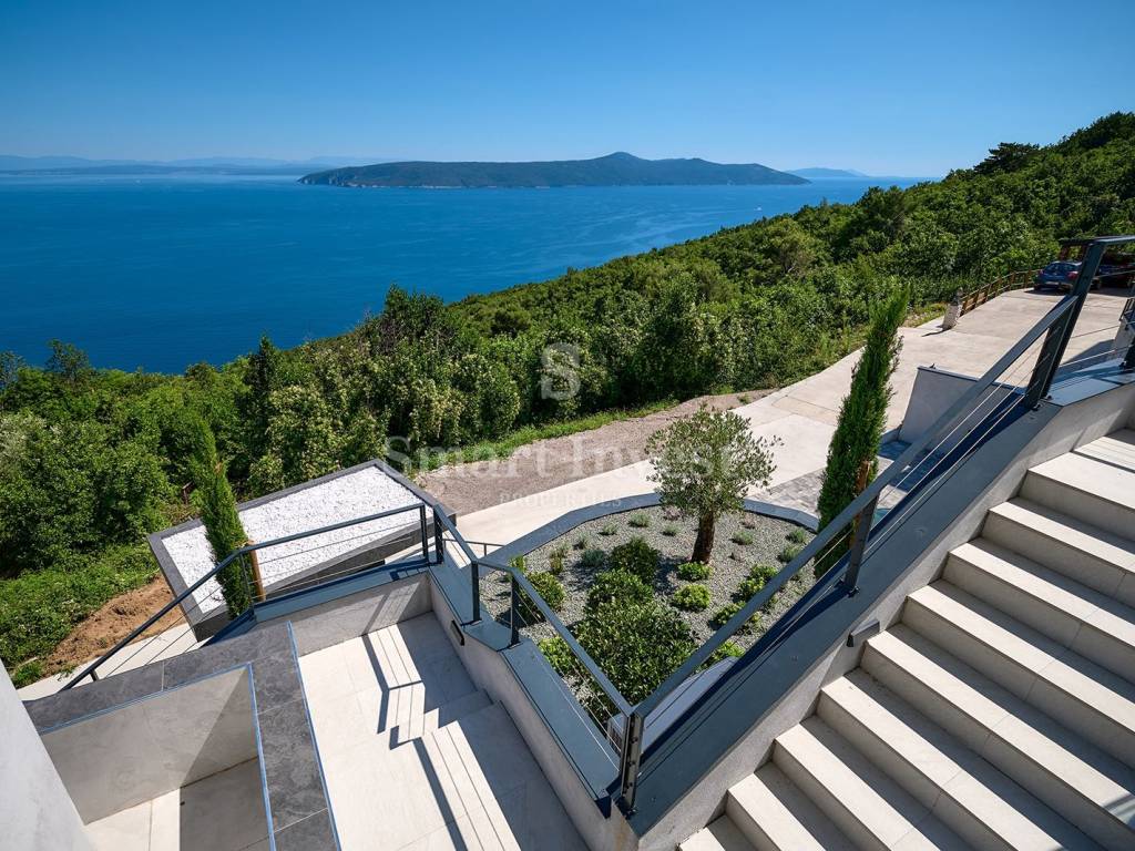 MOŠĆENICE, zum Verkauf steht eine moderne, luxuriös ausgestattete Villa, die in einer wunderschönen mediterranen Umgebung mit offenem Panoramablick auf die Kvarner Bucht und die Kvarner Inseln liegt.