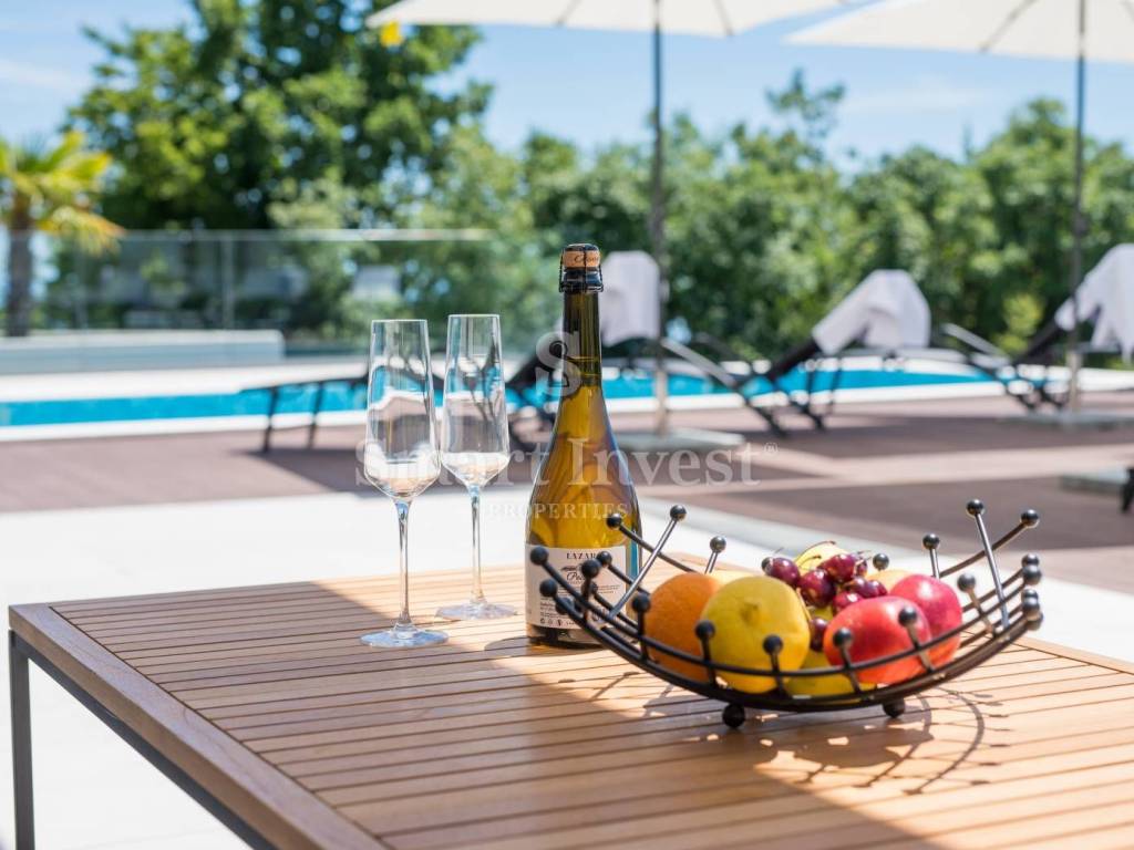Sie bietet einen atemberaubenden offenen Blick auf das Meer, ist von Grün umgeben und befindet sich in einem geschlossenen Mini-Wohnkomplex mit 5 Luxusvillen, wodurch die Privatsphäre der zukünftigen Eigentümer gewährleistet wird. Die Villa kann auch für gehobene touristische Vermietungen genutzt werden. Die Villa ist über die Schnellstraße von Zagreb zum Učka-Tunnel leicht zu erreichen und liegt etwa 10 Autominuten von Opatija entfernt.