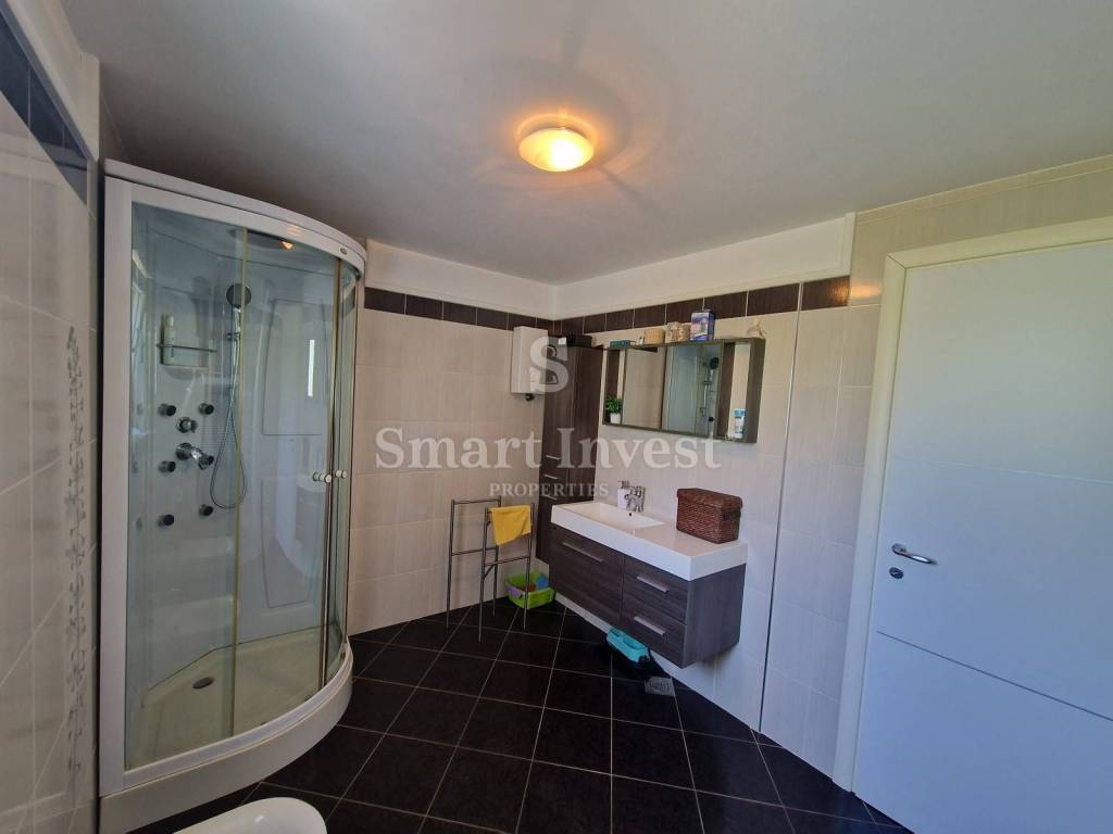 Das Haus wurde mit hochwertigen Materialien und Liebe zum Detail gebaut. Fußbodenheizung über Wärmepumpe, zusätzlich Heizung über Kamin oder Klimaanlage. PVC-Fenster, außer der großen Aluminium-Schiebetür. Dazu gehören eine 70 m große Garage, Abstellraum und Holzlager.