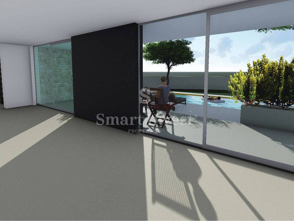 Heizung und Kühlung mit Inverter-Klimaanlagen, PVC-Tischlerei, Keramikfliesen, Parkett in den Schlafzimmern, Fliesen im Pool. Die erste Phase der Fußbodenheizung und Sonnenkollektoren.