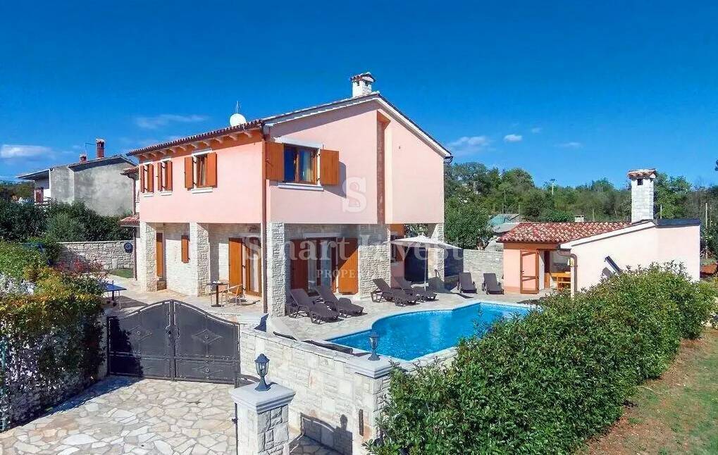 ISTRIEN - BARBAN Nähe, Zum Verkauf steht eine schöne 4-Schlafzimmer-Villa mit Swimmingpool und Sommerküche in einem kleinen istrischen Dorf in der Nähe von Barban, 15 km vom Meer entfernt.