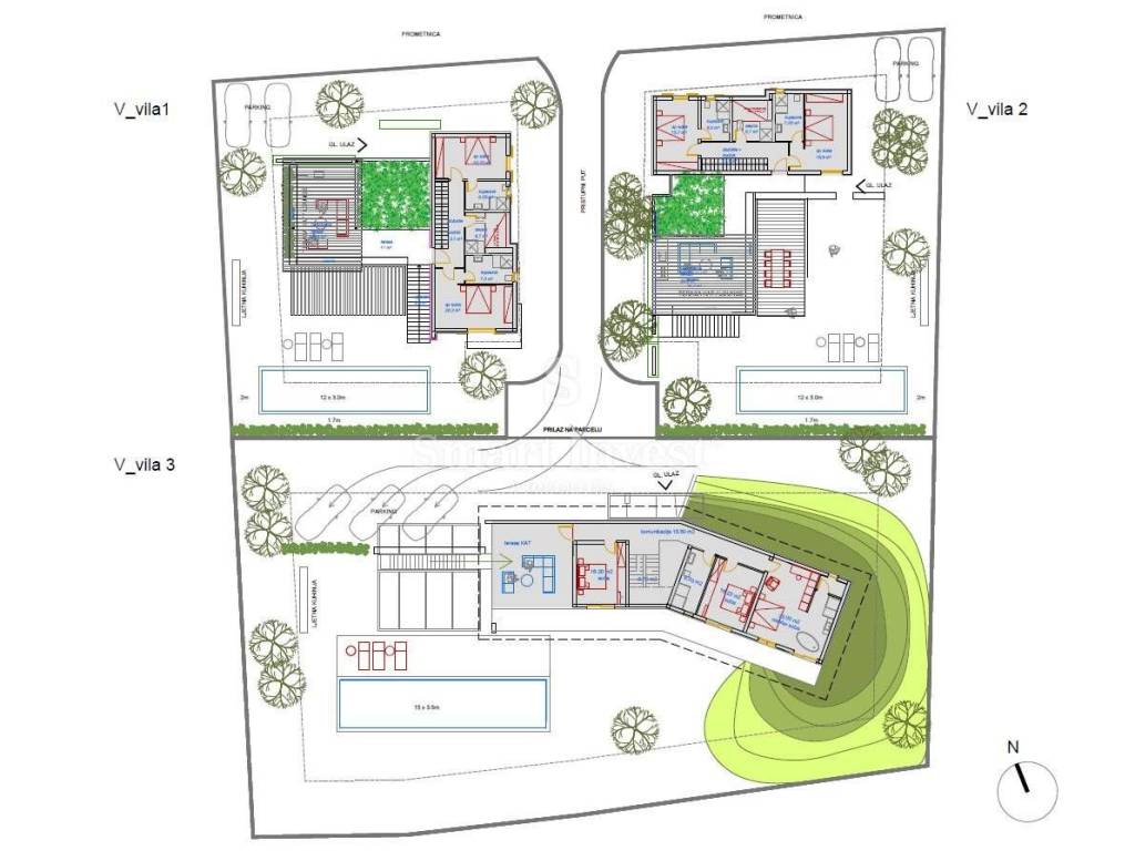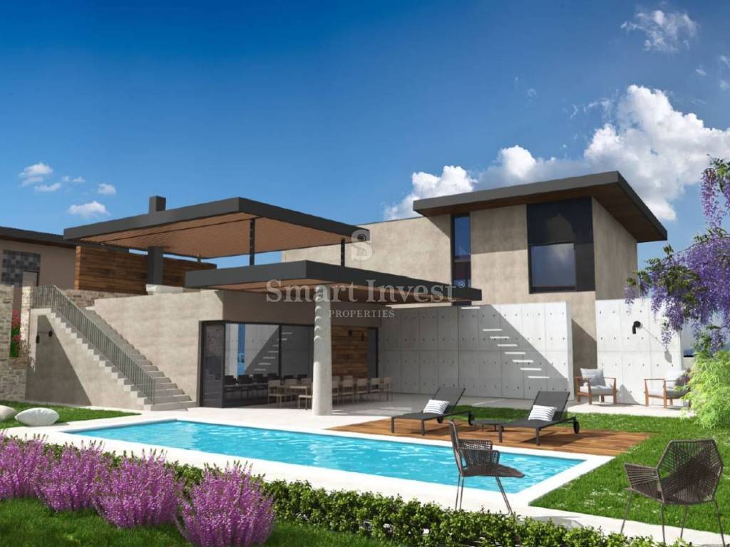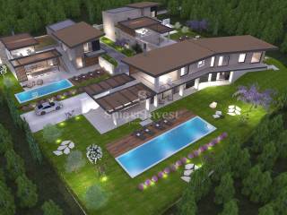 Der Komplex aus 3 Luxusvillen mit Swimmingpools befindet sich in ausgezeichneter Lage in einer ruhigen Gegend von Vodnjan, mit einem einzigartigen Blick auf das Meer und den Nationalpark Brijuni, der sich vom Grundstück aus erstreckt. Das Grundstück ist das letzte Baugrundstück, danach gibt es nur noch Olivenhaine.