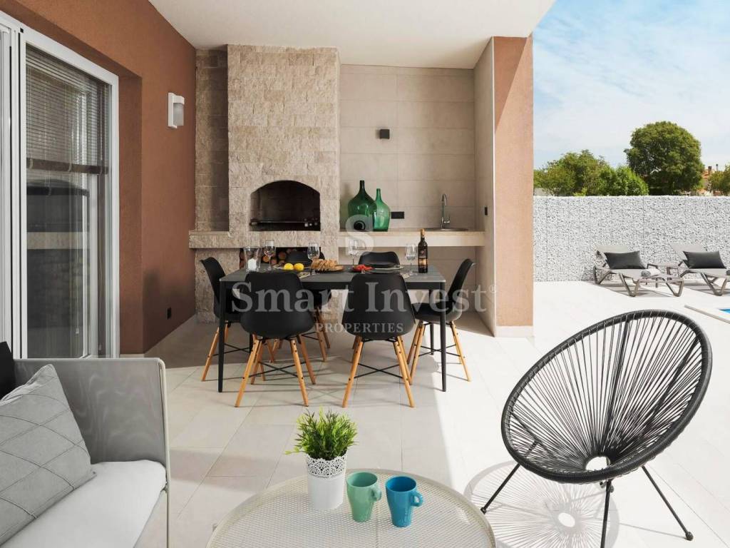 Die Villa von 230 m2 befindet sich auf einem Landschaftsgrundstück von 450 m2. Im Erdgeschoss gibt es ein geräumiges Wohnzimmer mit Küche und Essbereich mit Zugang zu einer überdachten Terrasse mit Sommerküche und Grill und zum Pool, einen Unterhaltungsbereich mit Billard und PlayStation, eine Toilette. Auf der ersten Etage befinden sich 3 Schlafzimmer mit en-suite Badezimmern und eine geräumige Terrasse.