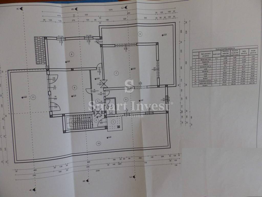 VIŠKOVO, detached house of 917 sqm with a large house plot of 1.305 sqm. In the basement and ground floor there are business premises, business hall with offices and warehouse, while at the first floor there is a duplex apartment area of 330 sqm with 6 bedrooms + living room.