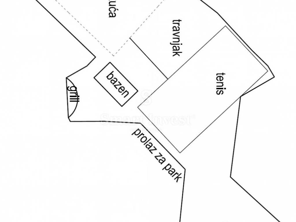BREGI, urbanized land area of 2.183 sqm with building permit to build a house with swimming pool and tennis terrain. The land has a sea view and access to the asphalt road.
