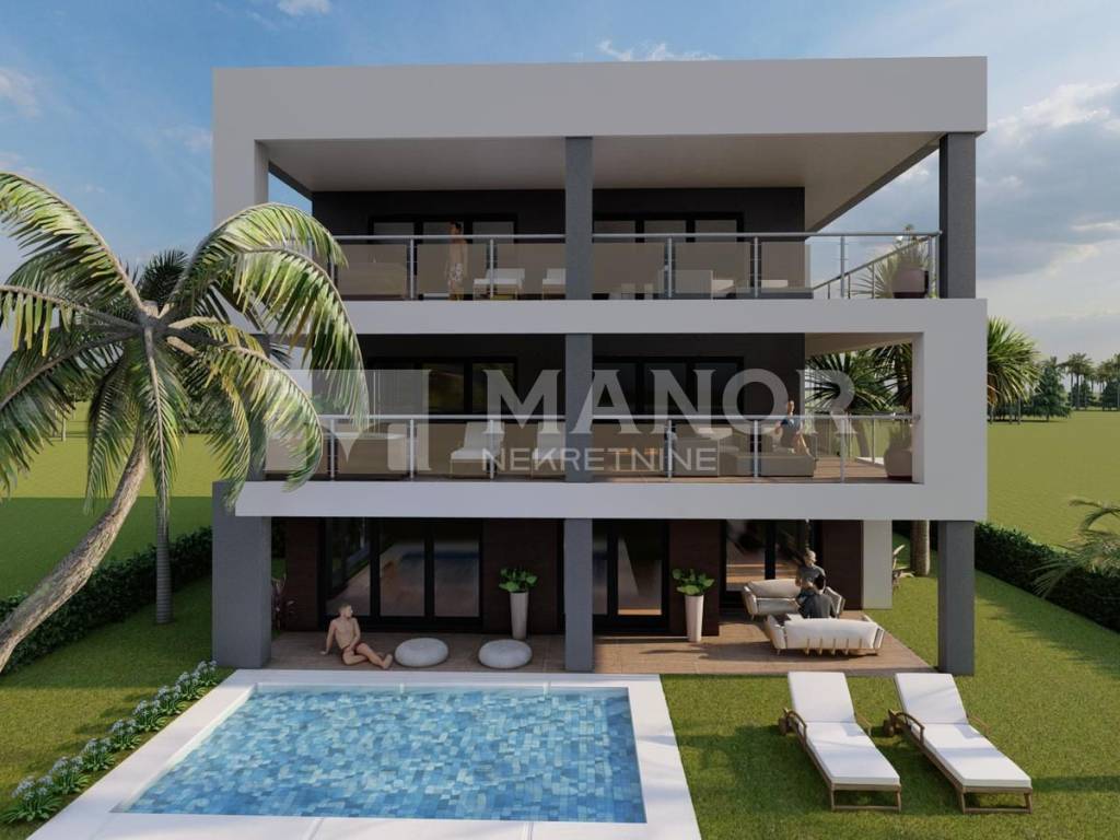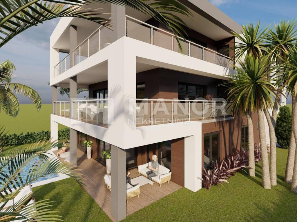 Manor präsentiert ein exklusives Apartment mit Swimmingpool und Garten im Erdgeschoss einer neuen Stadtvilla in Vrbnik auf der Insel Krk.