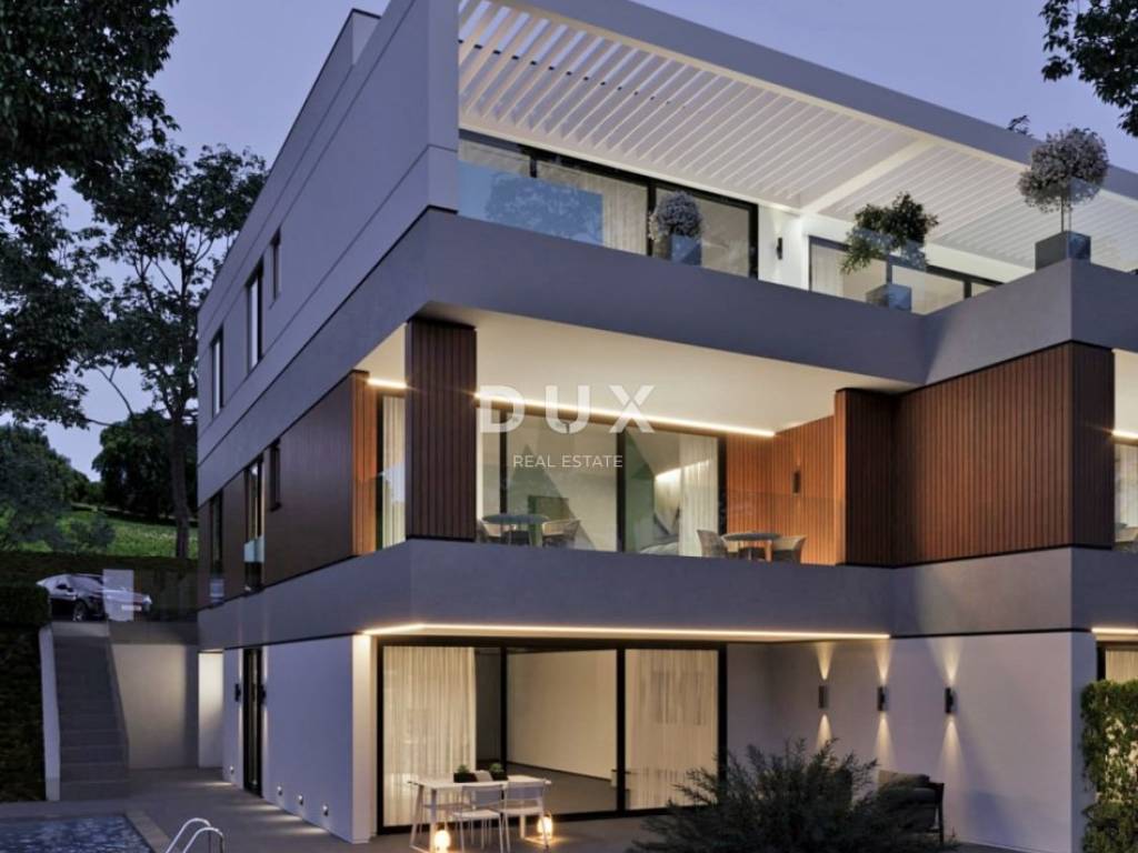 Im exklusiven Verkauf von Dux bieten wir Ihnen eine einmalige Gelegenheit für einen Neubau in Lovran, in der Nähe von Opatija. Das Gebäude liegt in einer ruhigen Straße oberhalb des Strandes von Lovran und bietet Panoramablick auf das Meer. Das Haus befindet sich in einer umzäunten Anlage mit Boutique-Lifestyle Luxus, Panoramablick auf das Meer, Pool, Sonne und hochwertige Bauweise. In einem Haus befinden sich zwei Maisonette-Wohnungen und ein Penthouse. Jede Einheit hat einen eigenen Eingang und garantiert ein gehobenes Wohngefühl. Hohe Decken, große Glaswände mit herrlichem Panoramablick auf das Meer, Fußbodenheizung mit Wärmepumpe, erstklassige Keramik, Parkettböden und Sanitärkeramik, Aluminiumfenster, beheizter Pool, Garten mit üppiger Bepflanzung und Bewässerungsanlage sind weitere Highlights. Die Mikrolage ist fantastisch: Die Fahrt ins Zentrum von Lovran oder zum ersten Strand dauert 5 Minuten auf einer lokalen Straße, während die Gebäude unterhalb der oben genannten Straße in einer verkehrsfreien Straße liegen, was Ruhe garantiert. Die Fahrt ins Zentrum von Opatija dauert 12 Autominuten. Dies ist eine ideale Gelegenheit für Investitionen oder Wohnen an der Riviera von Opatija. Es eignet sich als Privatwohnung oder als luxuriöse Touristenunterkunft. Um einen Besichtigungstermin zu vereinbaren, rufen Sie bitte den Makler an eine Beratung auf Deutsch ist möglich.