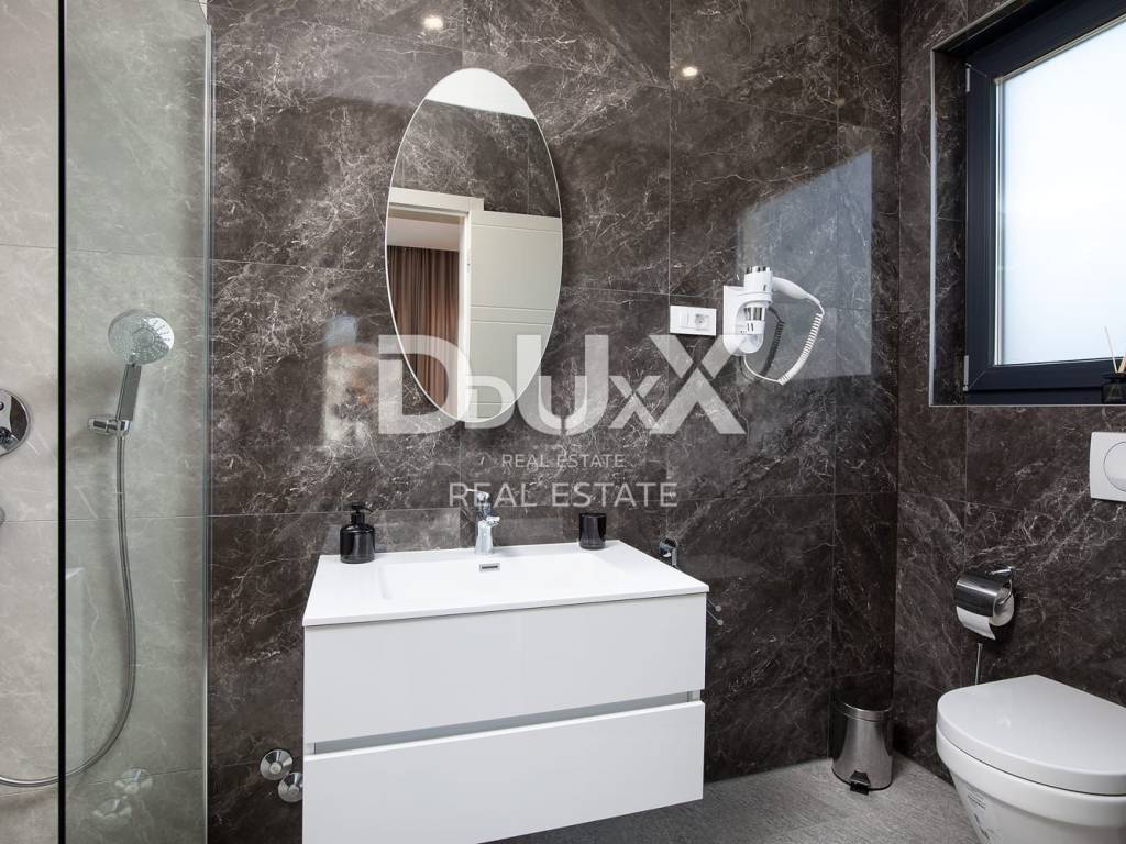 Nur 800 m vom Meer und berühmten Stränden entfernt befindet sich dieser moderne Riese, der gegen Ende 2021 erbaut wurde. Die Villa verfügt über insgesamt 300 m Wohnfläche, die sich über zwei Etagen und einen Keller erstrecken. INFORMATIONEN: Diese tadellose, moderne Designervilla in hochwertiger Bauweise besteht aus einer charaktervollen Eingangshalle, die mit Hilfe einer massiven Glaswand Frische und Großzügigkeit ausstrahlt. Sie ist auch eines der wichtigsten Designelemente der Villa, das zu ihrem Charakter und ihrer Einzigartigkeit beiträgt. So gibt es in der Eingangshalle mit den hohen Decken eine Treppe, die den gesamten Raum der Villa verbindet und eine Kommunikation zwischen allen Etagen ermöglicht. So gibt es im Erdgeschoss der Villa einen größeren und luftigeren Open Space-Bereich in einem modernen mediterranen Stil, der mit einem geräumigen Essbereich eingerichtet ist, neben dem sich eine moderne und hochwertig ausgestattete Küche mit einer langen Bar befindet. Am Ende desselben Raumes befindet sich ein idealisiertes und luftiges Wohnzimmer. Der gesamte Raum ist dank einer Glaswand, die sich über die gesamte Länge des Raumes erstreckt, in Tageslicht getaucht und bietet einen Blick auf den Pool und den Innenhof. Durch dieselbe Glaswand führt auch ein Ausgang zu einer kleineren überdachten Außenterrasse und einem Sonnendeck. Weiter, im privaten Teil des Erdgeschosses, der durch einen Flur abgetrennt ist, befinden sich drei Schlafzimmer, jedes mit eigenem modernen Bad, während eines der Schlafzimmer direkten Zugang zum grünen Garten und zum Pool bietet. Das Obergeschoss ist über eine moderne Treppe mit einer Kombination aus Glasgeländern, Metallkonstruktionen und Holzstufen erreichbar. Dort befinden sich weitere fünf Schlafzimmer, jedes mit eigenem Bad. Zwei davon haben eine gemeinsame, größere, überdachte Terrasse. Eines dieser fünf Schlafzimmer ist das Hauptzimmer, das über einen längeren Glasflur zugänglich ist, der sich entlang der größeren Gemeinschaftsterrasse erstreckt. Da es sich um eine Villa mit hohem Standard handelt, gibt es im Untergeschoss einen Spa-Bereich mit eigener Sauna und Ruhebereich. GARTEN; Der Hof ist komplett eingezäunt und vor der Villa gibt es ausreichend Parkplätze für 4 bis 5 Autos. Der zentrale Teil des Gartens auf der Rückseite der Villa wird von einem 30 m2 großen beheizten Swimmingpool und einer Liegewiese eingenommen. Es gibt auch eine überdachte Terrasse zum Entspannen mit Ihrem Lieblingsbuch und einem Glas Wein sowie eine Sommerküche mit Baldachin und ein kleines Nebengebäude, das als Abstellraum dient. Für die Kleinsten gibt es einen kleinen Kinderpark mit Grünflächen. ZUSÄTZLICHE INFORMATIONEN: * Die Villa verfügt über Fußbodenheizung auf allen Etagen. * Jedes Zimmer ist klimatisiert. * Auf den Böden ist hochwertige Keramik verlegt. * Außerdem wurden anthrazitfarbene PVC-Tischlereiarbeiten mit elektrischen Rollläden und Moskitonetzen installiert. * Die Villa wird voll möbliert verkauft, wie auf den Bildern, dem Video und dem 3D-Rundgang zu sehen ist. * Die Villa ist derzeit zur Miete verfügbar und die Ankündigungen für die Saison 2024 übertreffen die Erwartungen. Das bedeutet, dass Sie mit dem Kauf einer Villa ein bereits gut etabliertes und sicheres Unternehmen mit garantierter Kapitalrendite übernehmen. LAGE: In Anbetracht der Tatsache, dass dies einer der meistbesuchten Orte in Südistrien ist, das berühmte Medulin, ist es wichtig zu beachten, dass Medulin, reich an Kulturgeschichte, einst ein kleines Fischerdorf mit günstiger geografischer Lage, einem gut geschützten Hafen und fruchtbarem Hinterland war, was zu seiner wirtschaftlichen Entwicklung beitrug. Heute gilt es als eines der besten Reiseziele in Kroatien. Diese idealistische, moderne Villa befindet sich hier, in der Nähe zahlreicher Restaurants, Cafés, eines aktiven Nachtlebens und einer Fülle von Kultur. Es ist ein idealer Ort, um Ihre Freizeit während der Sommermonate zu verbringen oder als Option für ein ganzjähriges Leben. Zahlreiche Geschäfte und andere Elemente, die für den Komfort eines modernen Lebensstils unerlässlich sind, befinden sich in unmittelbarer Nähe der Villa. Die berühmten Sandstrände und die berühmte Medulin Riva, das Zentrum des Geschehens, sind nur 800 m entfernt. Ungeachtet der Nähe zu den zahlreichen Angeboten von Medulin befindet sich die Villa dennoch in einer ruhigen Lage ohne Touristenlärm und Verkehr.