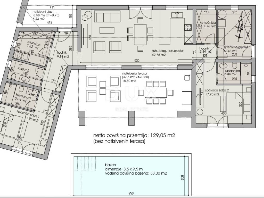 Sehr geehrte Kunden, die Agenturprovision wird gemäß den Allgemeinen Geschäftsbedingungen berechnet: www.dux-nekretnine.hr/opci-uvjeti-poslovanja
