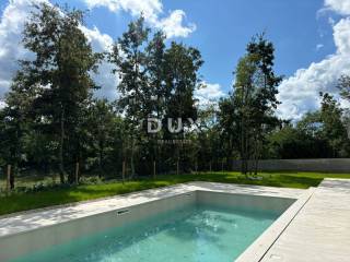 Wir präsentieren eine wunderschöne neue Villa im istrisch-mediterranen Stil in abgeschiedener Lage mit viel Grün und Blick in die Natur! Das Grundstück vor der Villa ist landwirtschaftlich genutzt, daher sind Ruhe und Ausblick auf die grüne Oase garantiert. Das Haus liegt in Zentralistrien, zwischen den istrischen Städten Gračišće, Lindar und Žminj. Es liegt auf hügeligem Gelände inmitten eines sanften istrischen Eichenwaldes. Die Lage ist ideal für alle, die Natur und Ruhe lieben. Das Klima hier ist trocken und gesund, und die Nächte sind trotz der extremen Hitze im Sommer angenehm. Es wurde als Kombination aus moderner Architektur und traditionellem mediterranen Stil mit einfachen Linien konzipiert, gebaut mit modernen und traditionellen Materialien wie Stein, Holz und Beton. Das Haus hat zwei Etagen, eine Wohnfläche von 180 m2 auf einem Grundstück von 1000 m2. Die Wohnräume des Hauses haben über Außenterrassen direkten Kontakt mit dem umliegenden Gelände und bieten vom Erdgeschoss und der ersten Etage aus einen wunderschönen freien Blick in die Natur und auf einen Swimmingpool. Die Villa hat einen konzeptionell langgestreckten rechteckigen Grundriss mit Pergolen und Vordächern auf der Südseite. Die Villa besteht aus einer Eingangshalle, einem Wohnzimmer, einer Küche, einem Esszimmer, 3 Schlafzimmern mit 3 Bädern, einer Toilette, einem Hauswirtschaftsraum und einem Abstellraum. Das Erdgeschoss besteht aus einem offenen Wohnzimmer mit Küche und Esszimmer, Hauswirtschaftsraum und Toilette sowie einem Schlafzimmer mit Bad. Die erste Etage besteht aus zwei Schlafzimmern, jedes mit eigenem Bad. Das Erdgeschoss bietet Zugang zu einer Terrasse mit freiem Blick auf den Pool. Die Raumheizung und die Trinkwasseraufbereitung erfolgen über eine zentrale Anlage mit Wärmepumpe und Solarkollektoren. Als Energiequelle dient Strom. Im Wohnzimmer befindet sich ein schöner Holzkamin, der zum einzigartigen Ambiente beiträgt. Alle Bäder sind mit Fußbodenheizung ausgestattet. Der Pool ist 50 m2 groß. Der Poolrand ist mit Steinen gepflastert, der Poolinnenraum mit Mosaikfliesen. Die Sonnenterrasse rund um den Pool ist ebenfalls mit Steinen ausgelegt. Ein ideales Anwesen für alle, die Ruhe im authentischen istrischen Stil suchen.