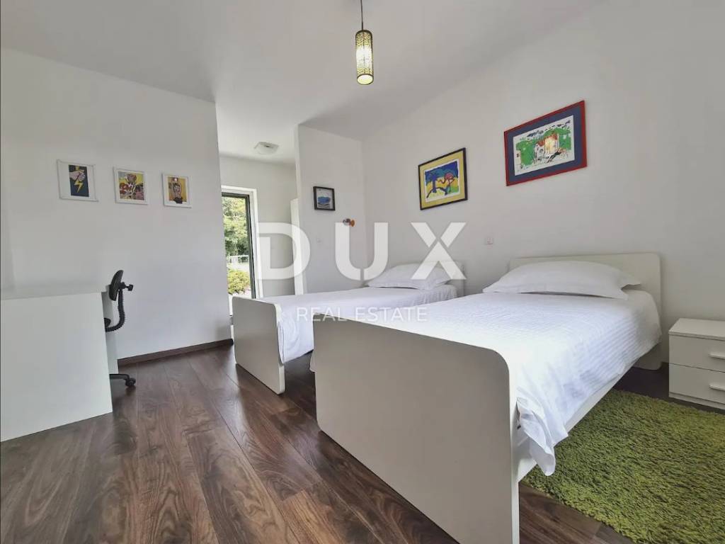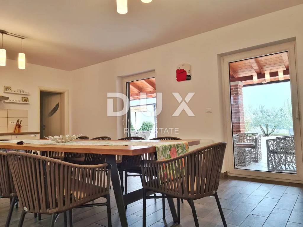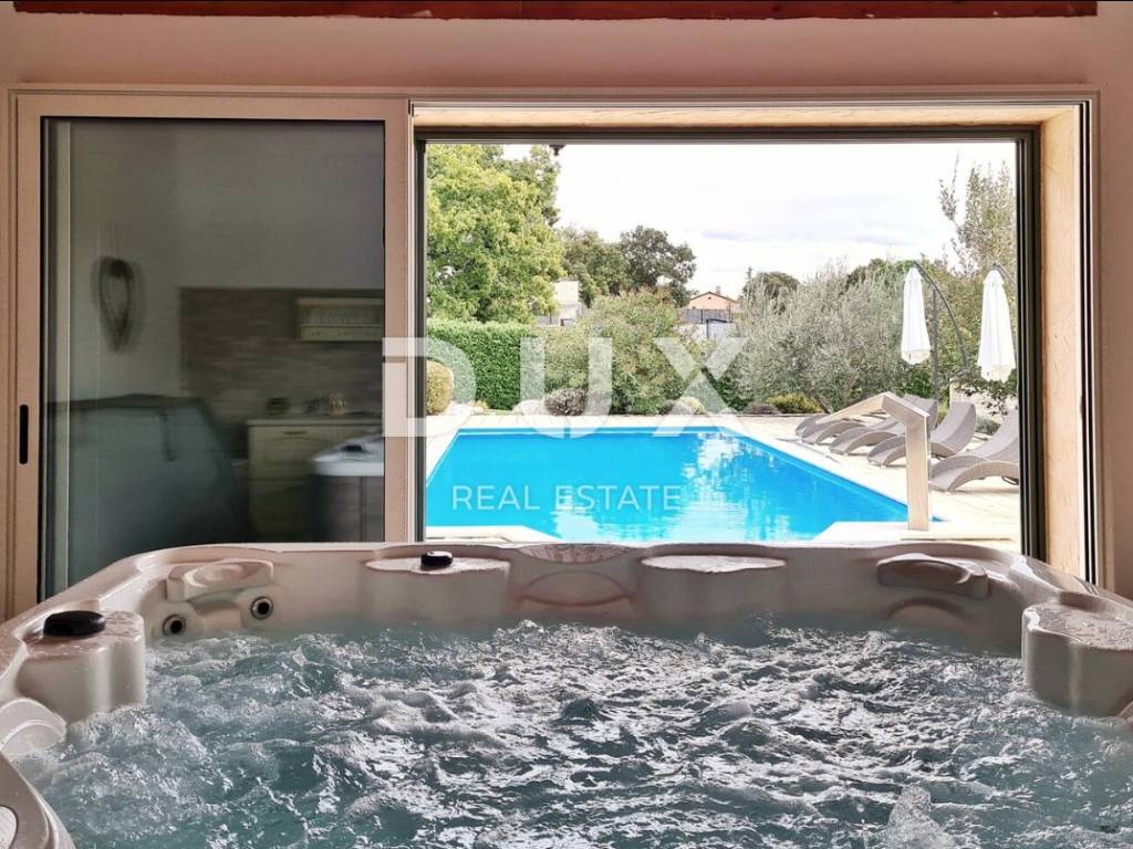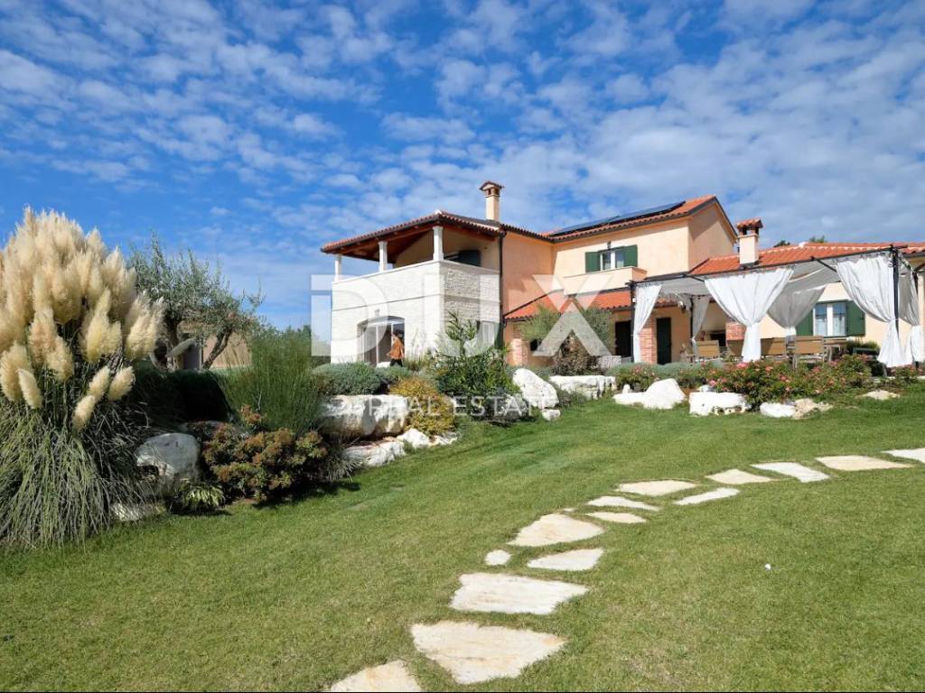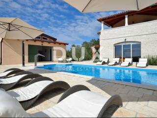 Višnjan ist eine malerische und farbenfrohe Stadt und Gemeinde im westlichen Teil Istriens. Die Gemeinde Višnjan hat 56 Siedlungen und liegt im Gebiet zwischen dem Fluss Mirna im Norden und dem Lim-Kanal im Süden. Das romantische Višnjan liegt auf einem sanften Hügel 244 m über dem Meeresspiegel, umgeben von Wiesen, Ackerfeldern und Wäldern aus Honigeichen und Hainbuchen. Heute ist Višnjan vor allem für sein einzigartiges Observatorium bekannt, das gemessen an der Zahl der entdeckten Asteroiden zu den zwölf produktivsten Observatorien aller Zeiten gehört. Unweit von Višnjan, am Ende des Dorfes, befindet sich eine schöne istrische Villa, umgeben von Natur und Grün. Aufgrund seiner Lage und Umgebung bietet es völlige Ruhe und Flucht aus dem geschäftigen Lebensstil. Darüber hinaus übernimmt der Kauf dieses Hauses das bereits etablierte Geschäft der Vermietung während der Touristensaison, mit hervorragenden Bewertungen auf allen Portalen, auf denen es beworben wird. Das Haus hat eine Nettowohnfläche von 290 m und befindet sich auf einem eingezäunten Grundstück mit einer Gesamtquadratfläche von 1800 m. Es erstreckt sich über das Erdgeschoss und den ersten Stock, das Erdgeschoss besteht aus 2 Schlafzimmern mit jeweils eigenem Bad, Gäste-WC, Küche mit Speisekammer, Esszimmer und Wohnzimmer mit Kamin. Direkt vom Wohnzimmer aus gelangt man in den Außenbereich, der für Geselligkeit und das Genießen der Sommermonate reserviert ist, eine Terrasse und eine Pergola mit Essplatz im Freien neben dem Strand vor dem Pool (50 m). Es gibt 3 Schlafzimmer im ersten Stock, jedes mit eigenem Bad, eines davon hat Zugang zu einer Terrasse mit Blick auf die Landschaft, während das zweite Zimmer Zugang zu einem kleineren Balkon hat. Außerdem bietet das Haus verschiedene Aktivitäten wie Sauna, Indoor-Whirlpool, Tischfußball, Billard und der Grill ist ein weiterer Garant für gute Unterhaltung und Geselligkeit. Der Whirlpool befindet sich in einem kleineren Nebengebäude, in dem sich eine weitere Toilette und ein Maschinenraum befinden, aber Istrien ist für Kažun bekannt, und ein Beispiel für ein echtes kleines traditionelles Kažun ist in dieser wunderschönen istrischen Villa zu sehen. Der aktuelle Zweck der Kazuna ist ein Abstellraum für Fahrräder, aber sie könnte in eine luxuriöse Sauna oder einen Jacuzzi-Raum umgewandelt werden. Dieses Haus ist ein echtes Beispiel für das Leben in einer ruhigen und ländlichen Umgebung mit einem Hauch von Luxus.