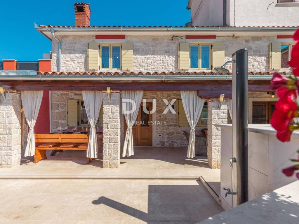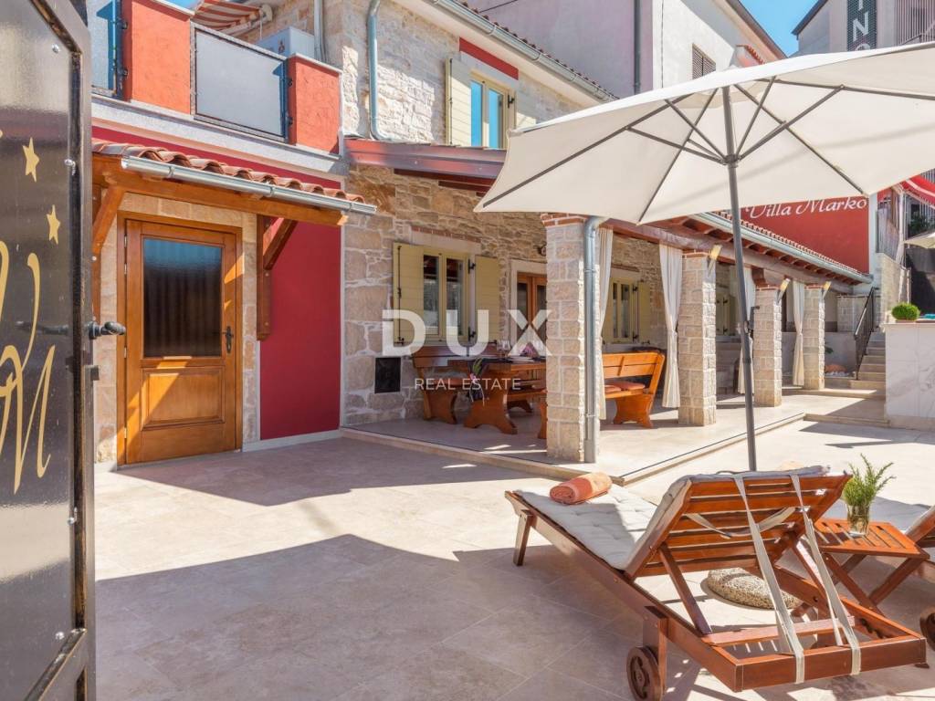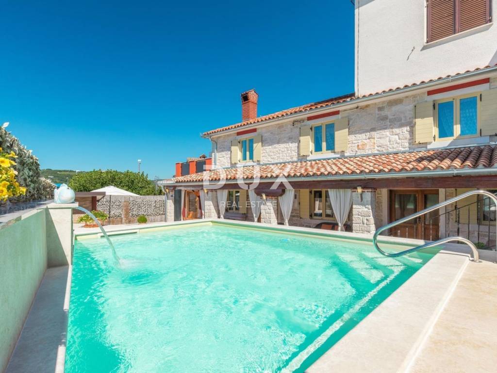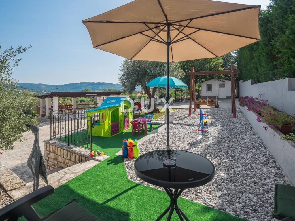 Die mittelalterliche Stadt Buje liegt im nordwestlichen Teil der istrischen Halbinsel und liegt auf einem Hügel mit herrlichem Blick auf das Meer, die umliegenden Hügel, Weinberge und Olivenhaine, für die diese Gegend berühmt ist. Die Nähe zum Meer, der Einfluss des mediterranen und milden kontinentalen Klimas, die Tradition in landwirtschaftlicher Produktion, Jagd und Tourismus, die hügelige Landschaft und die erhaltene und unberührte Natur machen das Gebiet der Stadt Buje zu einem der attraktivsten Gebiete der istrischen Halbinsel. In der Nähe der Stadt Buje steht ein Mehrfamilienhaus mit Pool zum Verkauf. Das geräumige Haus erstreckt sich über das Erdgeschoss, den ersten Stock und das Dachgeschoss und besteht aus vier komfortablen Wohneinheiten mit separaten Eingängen. Die kleinere Haushälfte, genauer gesagt eine Wohneinheit, die sich über das Erdgeschoss und den ersten Stock erstreckt, ist ein renoviertes Steinhaus, das seinen ursprünglichen, authentischen Charme bewahrt hat. Das Innere des Hauses ist ganz auf einen modernen Lebensstil abgestimmt und strahlt ein Ambiente aus, das von der Wärme des Holzes und der Frische des Steins geprägt ist. Es besteht aus einem geräumigen Wohnzimmer, einer Küche mit Esszimmer, einem Gäste-WC, drei Schlafzimmern, einem Badezimmer und einer großen überdachten Veranda, die auf einen gepflasterten Innenhof mit Swimmingpool führt. Die größere Haushälfte, erbaut in den 1970er Jahren, wurde regelmäßig instand gehalten und größtenteils renoviert und besteht aus drei Wohneinheiten. Eine Wohneinheit befindet sich im Erdgeschoss und besteht aus Esszimmer, Küche, Wohnzimmer, einem Schlafzimmer und einem Badezimmer. Die zweite Wohneinheit befindet sich im ersten Stock und besteht aus einem offenen Raum, der Küche, Esszimmer und Wohnzimmer mit Zugang zu einem Balkon verbindet, drei Schlafzimmern, einem Badezimmer und einem Gäste-WC. Die dritte Wohneinheit befindet sich im Dachgeschoss und besteht aus Küche, Esszimmer, Wohnzimmer, zwei Schlafzimmern, einem Badezimmer und einem Gäste-WC. Der großzügige Garten ist eingezäunt und sorgfältig mit mediterranen Pflanzen und Vegetation angelegt. Er umfasst eine Garage, ein Gartenhaus und einen Kinderspielplatz. Diese Immobilie bietet eine hervorragende Investitionsmöglichkeit für Tourismus und/oder Familienleben.