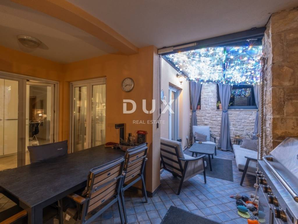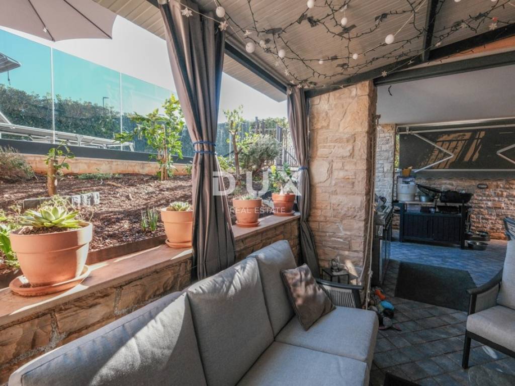Wir bieten eine äußerst attraktive Immobilie im Erdgeschoss eines kleinen Wohngebäudes mit insgesamt drei Wohneinheiten in ruhiger und begehrter Lage im Zentrum von Medulin. Die Wohnung liegt nur 200 Meter vom Meer entfernt und bietet ein hohes Maß an Komfort, Funktionalität und Privatsphäre, wodurch sie sich sowohl als Dauerwohnsitz als auch als touristische Vermietung oder als Ferieninvestition eignet. Die Wohnung mit einer Gesamtfläche von 62 m besteht aus zwei Schlafzimmern, einem geräumigen Wohnzimmer, das mit der Küche und dem Esszimmer verbunden ist, einem Badezimmer, einer überdachten Terrasse und zwei Eingängen dem Haupteingang über das Treppenhaus und dem zweiten, direkten Ausgang zum privaten Garten. Die Raumaufteilung ist äußerst praktisch und bietet einen angenehmen Wohnraum, während die große Glaswand zur Terrasse hin den Eindruck von Luftigkeit und Licht noch verstärkt. Einer der Hauptvorteile dieser Immobilie ist sicherlich der angelegte und eingezäunte Garten, der zusätzliche Privatsphäre bietet und ein idealer Ort zum Entspannen im Freien ist. Der Garten ist mit dezenter Ambientebeleuchtung ausgestattet und bietet direkten Zugang zum Gemeinschaftspool und zur Sonnenterrasse eine Seltenheit auf dem Markt und ein erheblicher Mehrwert für die Immobilie. Die Wohnung wird komplett ausgestattet und möbliert verkauft, mit sorgfältig ausgewählten Innenelementen, die ein hohes Maß an Funktionalität und Ästhetik gewährleisten. Klimaanlage und nordische Heizkörper sind installiert, sodass die Wohnung ganzjährig genutzt werden kann. Ein optischer Internetanschluss ist ebenfalls vorhanden, ideal für Remote-Arbeit oder ein Leben mit modernen technischen Anforderungen. Zur Immobilie gehört außerdem ein eigener Parkplatz, der sich direkt neben dem Gebäude befindet und im Preis inbegriffen ist. Das Gebäude und die Umgebung zeichnen sich durch geringe Bebauungsdichte, gepflegte Umgebung und hochwertige Infrastruktur aus. Alle notwendigen Einrichtungen des täglichen Lebens befinden sich in unmittelbarer Nähe Geschäfte, Restaurants, eine Apotheke, ein Yachthafen, Promenaden und zahlreiche Strände. Die Lage der Wohnung bietet die perfekte Balance zwischen Privatsphäre und Erreichbarkeit. Sie befindet sich in einer ruhigen Straße ohne Lärm und Verkehr und dennoch in unmittelbarer Nähe der Küste und aller attraktiven Einrichtungen von Medulin, einem der begehrtesten Touristenorte Istriens.