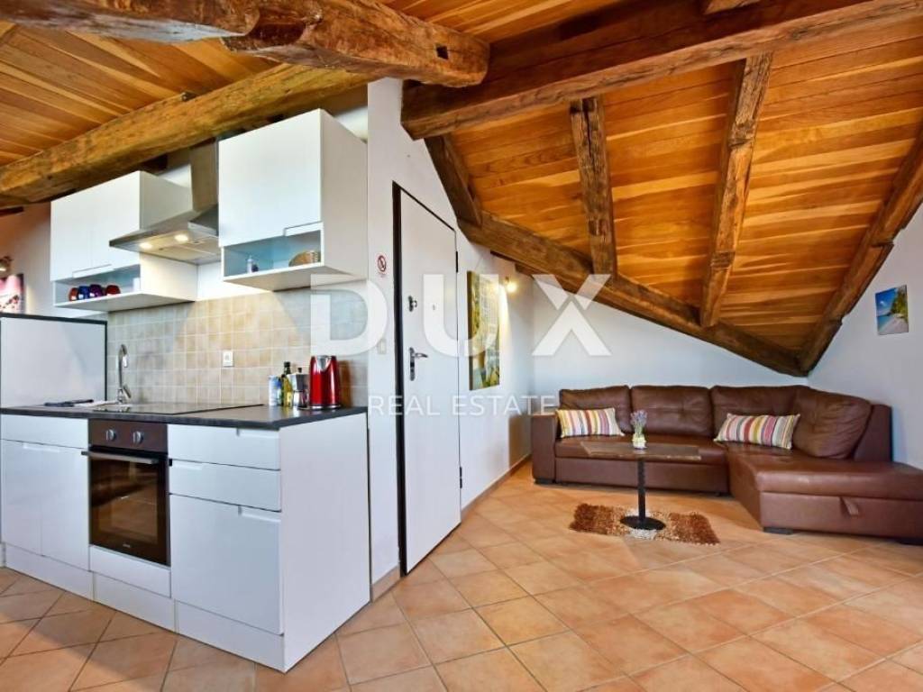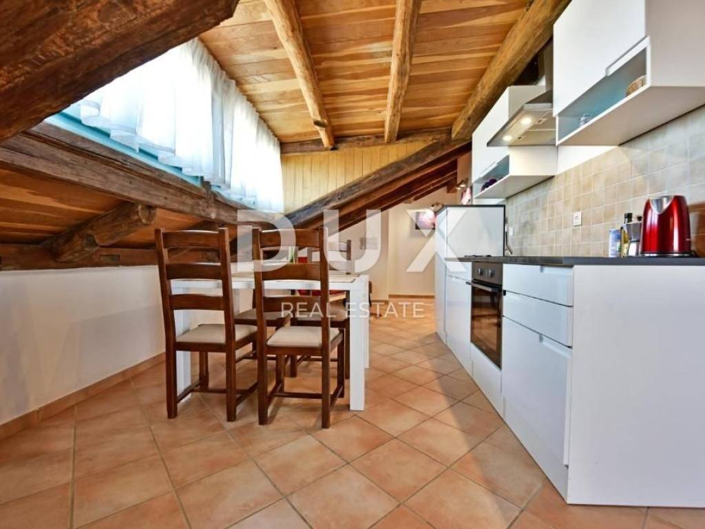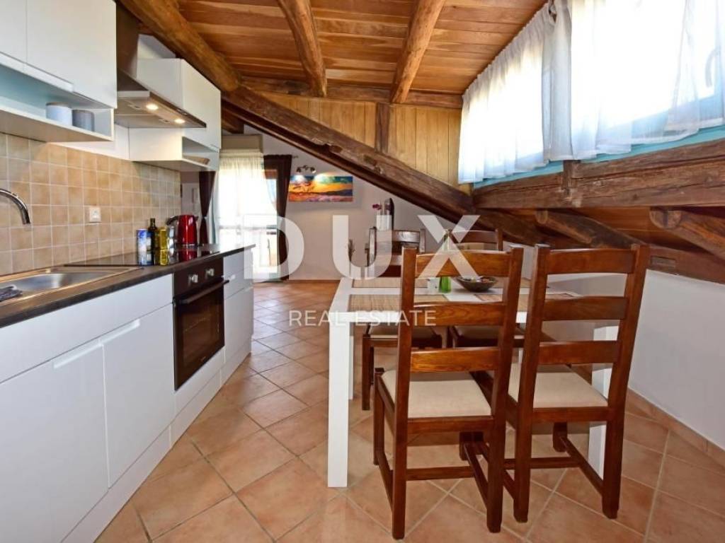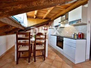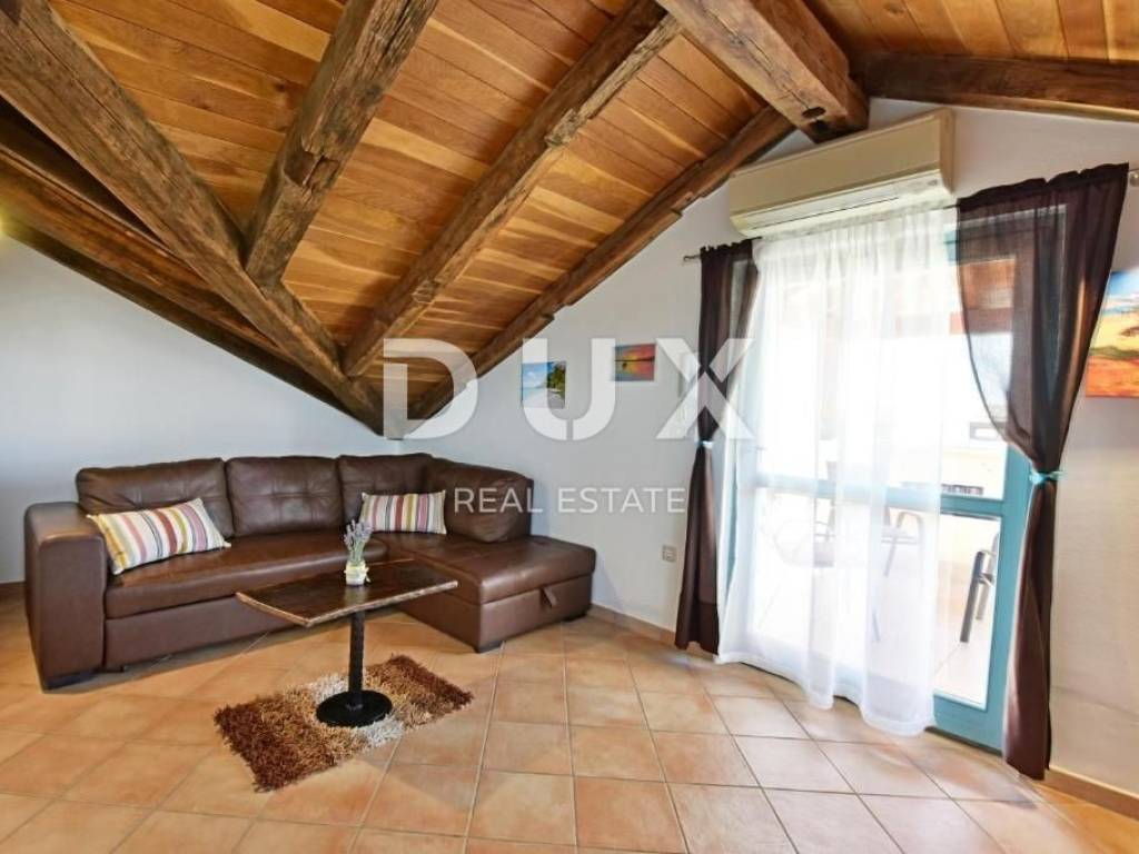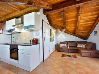 Die Stadt Poreč liegt an der Westküste Istriens und wurde in ihrer heutigen Form vor zwei Jahrtausenden von den alten Römern gegründet. Aufgrund seiner günstigen geografischen Lage und seiner natürlichen und kulturellen Schönheit ist Poreč eines der stärksten Touristenzentren in Kroatien. Der wichtigste Wirtschaftszweig ist der Tourismus, mit dem Handel, Baugewerbe und Landwirtschaft positiv korrelieren. Das bedeutendste Kulturdenkmal stammt aus byzantinischer Zeit, die Euphrasius-Basilika mit Bischofssitz aus dem 6. Jahrhundert. Die Straßen von Poreč sind mit Spuren großer Kulturen aus der Antike, der Romanik und der Gotik gepflastert. Natürlich zeichnet sich Poreč durch wunderschöne Strände und kristallklares Meer aus. In ruhiger Lage in der Nähe von Poreč steht im zweiten Stock, im Dachgeschoss des Gebäudes, eine Wohnung zum Verkauf. Die Wohnung befindet sich in einem kleineren Gebäude und besteht aus einem Wohnzimmer, einer Küche mit Esszimmer, zwei Schlafzimmern und einem Badezimmer. Die Terrasse, die in den Sommermonaten genossen werden kann, ist über 20 m2 groß und bietet einen Blick ins Grüne und auf das Meer. Der Parkplatz befindet sich vor dem Gebäude. Den Mietern steht das ganze Jahr über der Tennisplatz und in den Sommermonaten das Schwimmbad zur Verfügung. Das Gebäude ist ordentlich und gepflegt. Die Wohnung lässt sich in den Sommermonaten gut vermieten und ist somit eine investitionsfreie Mietmöglichkeit, aber auch eine schöne, komfortable Wohnung zum Wohnen.