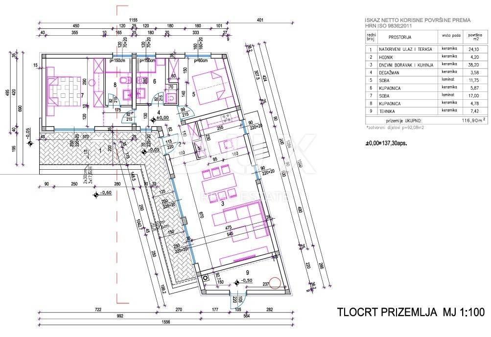 Marčana ist eine Gemeinde im Südosten der istrischen Halbinsel. Sie liegt etwa 12 km nordöstlich von Pula, der größten Stadt Istriens. Sie ist als Reiseziel für Meer, Urlaub, Wein und Olivenöl bekannt. Es ist eine kulturell reiche Gemeinde mit kristallklarem Meer und einer fast unwirklichen Landschaft aus luxuriösen Buchten und grünen Halbinseln. Ihre 36 Kilometer lange Küste ist die am wenigsten urbanisierte Küstenzone Istriens. Marčana und seine fruchtbaren grünen Felder mit sanften Hügeln, die zu versteckten felsigen Buchten abfallen, und in sich geschlossenen Dörfern und Städten sind die unentdeckten Schätze der Ostküste Istriens. In einer ruhigen und attraktiven Umgebung, ideal für das Familienleben oder die touristische Vermietung, steht ein modernes einstöckiges Haus im Rohbau mit einer Gesamtwohnfläche von 117 m und einem privaten Pool von 35 m zum Verkauf. Das Anwesen zeichnet sich durch modernes Design, funktionale Raumaufteilung und hohe Energieeffizienz aus Energieklasse A+. Wohnfläche: 117 m. Pool: 35 m mit geräumigem Sonnendeck. Schlafzimmer: 2 komfortable Schlafzimmer. Badezimmer: 2 Badezimmer. Offenes Wohnzimmer mit Küche und Esszimmer. Zugang zu einer überdachten Terrasse und einem begrünten Innenhof. Privatparkplatz auf einem umzäunten Grundstück. Hochwertige Bauweise. Energieklasse A+ hervorragende Wärmedämmung und niedriger Energieverbrauch. Dieses Haus bietet höchsten Komfort und Privatsphäre und ist ideal für ganzjähriges Wohnen, Wochenendaufenthalte oder als Investition für eine luxuriöse Touristenvermietung. 1/1-Eigentum, keine Belastungen.
