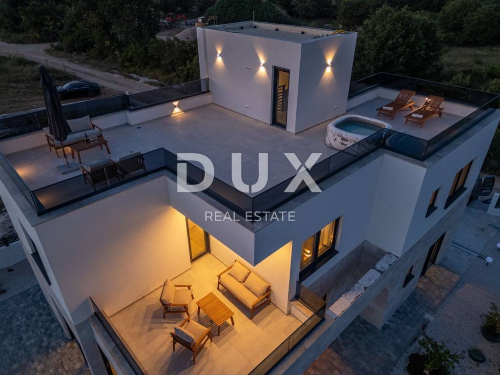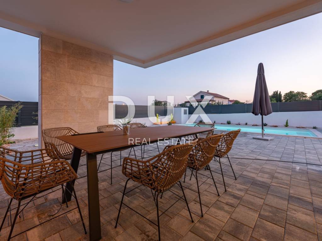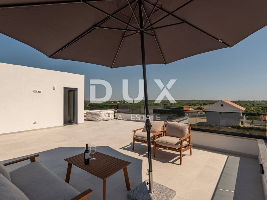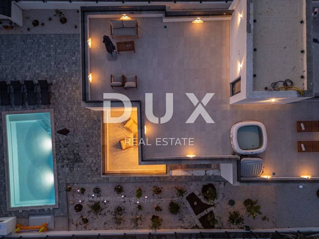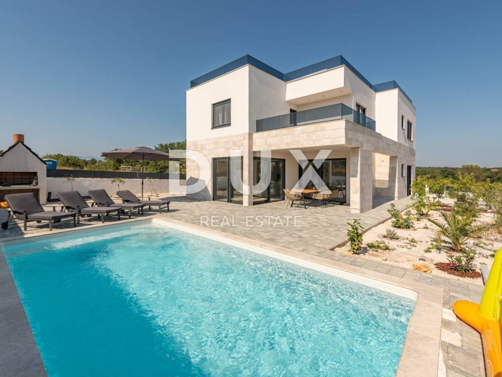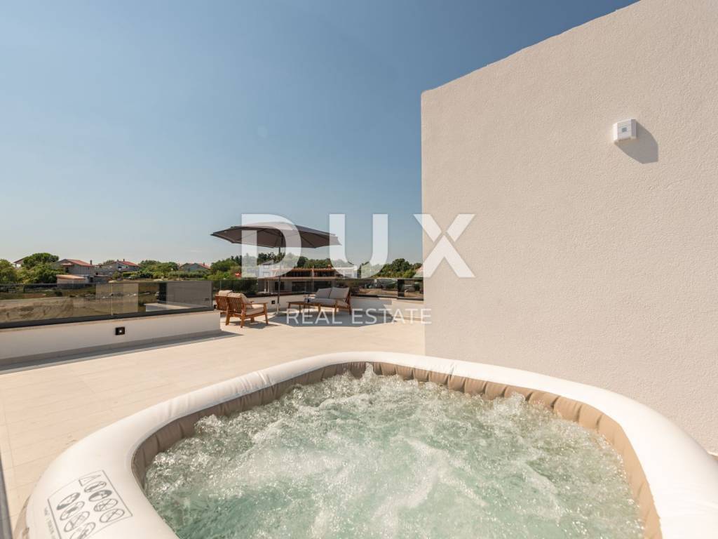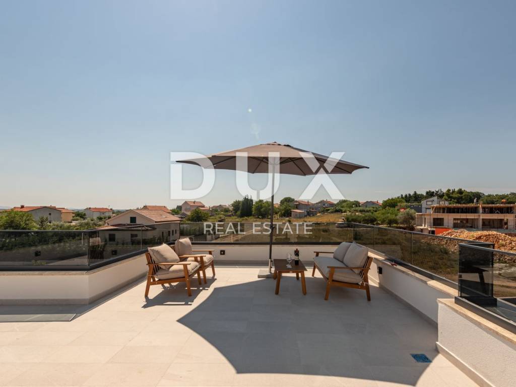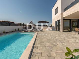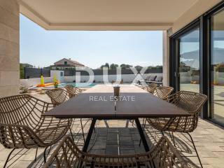 Zum Verkauf steht eine Luxusvilla in Zadar in ruhiger Lage. Das Haus hat eine Gesamtfläche von 260,00 m2. Im Erdgeschoss des Hauses befinden sich ein Wohnzimmer, eine Küche, ein Fitnessraum und eine Terrasse mit einem 30 m2 großen Hydromassagepool. Eine Innentreppe führt in den ersten Stock, wo sich vier Schlafzimmer, zwei Badezimmer, eine Waschküche und eine Terrasse befinden. Die Villa verfügt über eine Dachterrasse mit Whirlpool und Pergola. Das Haus wurde in hoher Qualität gebaut, die Fenster und Türen sind aus Aluminium mit dreifacher Wärmedämmung, Heizung und Kühlung erfolgen mit Hilfe einer Wärmepumpe. Es wird komplett möbliert und ausgestattet verkauft. Das Anwesen befindet sich in äußerst attraktiver Lage in einem ruhigen Teil von Zadar. Zadar ist das Zentrum der Gespanschaft Zadar, die zweitgrößte Stadt Dalmatiens und die fünftgrößte Stadt des Landes. Sie ist durch eine internationale Fährlinie mit der italienischen Stadt Ancona verbunden. Der Flughafen Zadar befindet sich in Zemunik, 10 km östlich der Stadt.