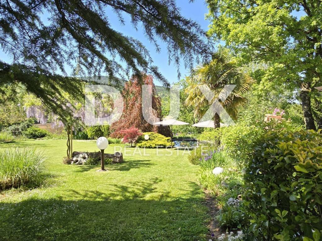 Pazin ist das Herz Istriens, der Sitz der Gespanschaft Istrien, wo die Einwohner unternehmungslustig und komfortabel leben. Sicher und offen, eine Stadt, die auf die Bedürfnisse der Menschen zugeschnitten ist, ein Bildungs- und Kulturzentrum, das die istrische Identität bewahrt und Tradition nutzt, um neue Werte zu schaffen. Pazin bietet zahlreiche Picknickplätze für Naturliebhaber. Neben einem wunderschönen Bach steht dieses schöne, renovierte Einfamilienhaus zum Verkauf, dessen sorgfältig angelegter Garten Sie sprachlos machen wird. Das Haus ist freistehend und hat eine Nettowohnfläche von 200 m2 + Terrasse. Im Erdgeschoss befinden sich zwei große Räume, deren Renovierung begonnen hat. Der zukünftige Eigentümer muss lediglich Fliesen oder Laminat nach seinen Wünschen verlegen. Es gibt auch eine große Garage. Eine Innentreppe führt in den ersten Stock, wo sich eine separate Wohnung mit Wohnzimmer, Küche und Esszimmer, zwei Balkonen mit schöner Aussicht, einem Abstellraum, drei Schlafzimmern, einem Badezimmer und einer Toilette befindet. Der erste Stock ist auch über eine Außentreppe erreichbar. Der Eingang und das Garagentor sind ferngesteuert. Der 3.517 m große Garten ist stilvoll gestaltet. Viele Blumen und Palmen sind gepflanzt, und der kleine Pool schafft eine besondere Atmosphäre. Eine automatische Bewässerung wurde installiert. Das Grundstück führt zu einem nahegelegenen Bach, dessen Rauschen bis zum Haus hörbar ist. Unweit des Hauses befindet sich ein Wasserfall, ein beliebter Picknickplatz für in- und ausländische Besucher der Gegend. Etwa 1.700 m des Gartens befinden sich in einer Bauzone, sodass der Bau eines Swimmingpools, einer Sommerküche oder zusätzlicher Einrichtungen möglich ist. Das Haus und der gesamte Garten sind von einer Mauer, einem Zaun und einer Hecke umgeben, was zusätzliche Privatsphäre bietet. Das Haus wurde 1985 erbaut und ist seit 1996 bezugsfertig. Dach, Fassade und Holzkonstruktionen wurden 2019 komplett renoviert. Für zusätzliche Sicherheit wurde eine Videoüberwachung installiert. Das Haus verfügt über zwei Klärgruben, ein Anschluss an die Kanalisation ist jedoch möglich. Das Haus verfügt über eine eigene Zisterne mit 38 m Fassungsvermögen und wird mit Stadtwasser versorgt. Die Heizung erfolgt zentral mit Heizöl. Ein Projekt für ein Nebengebäude mit 32 m ist bereits abgeschlossen. Sofort bezugsfertig! Die idyllische Lage wird Sie als Natur- und Ruheliebhaber begeistern. Buchen Sie Ihre Besichtigung rechtzeitig. Eine gute Gelegenheit!