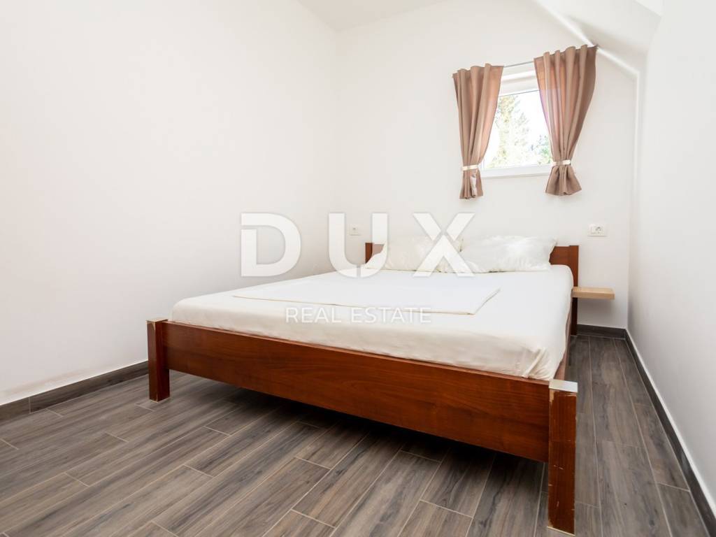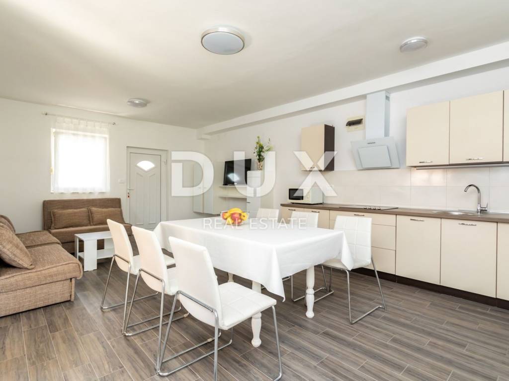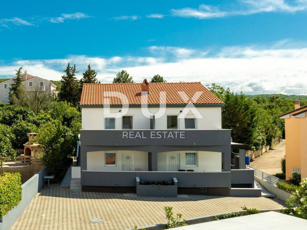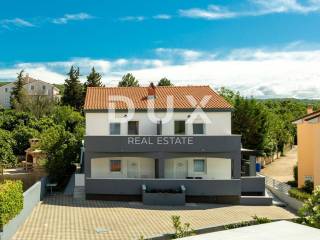 Die Insel Krk, Soline Bay, Doppelhaushälfte mit Pool zum Verkauf nur 100 Meter vom Meer entfernt. Es besteht aus dem Erdgeschoss und dem ersten Stock, die durch eine Innentreppe miteinander verbunden sind. Das Erdgeschoss besteht aus einem Wohnzimmer mit Küche und Essbereich, Toilette und Schlafzimmer mit Dusche und Waschbecken. Im Obergeschoss befinden sich zwei weitere Schlafzimmer und ein Wohnzimmer, das in ein weiteres Schlafzimmer, Bad, Sommerküche und Terrasse mit Blick auf das Meer umgewandelt werden kann. Das Erdgeschoss öffnet sich zu einer überdachten Terrasse mit Grill, neben dem Pool mit Sonnendeck. Das Haus ist voll möbliert und ausgestattet und wird als solches verkauft. Der größte Vorteil dieses Hauses ist die Lage, da es nur 100 Meter vom Meer entfernt liegt.