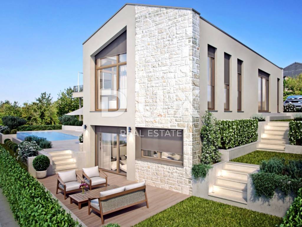 In einem angenehmen mediterranen Klima gelegen, im Herzen der westlichen Küste Istriens, erstreckt sich die alte Stadt Poreč mit ihrer Küste voller bewahrter Naturschönheiten, angelegter Parks, Pinien- und Eichenhaine, die bis zum Meer reichen und an denen sich das klare Meer, Strände, Buchten und Inseln abwechseln, über eine Fläche von 139 km und besteht aus 58 Siedlungen. Mit der Identität einer urbanen Küstenstadt ist Poreč eine Stadt der Kultur, des Sports, der Unterhaltung, des Tourismus und der wahren Gastfreundschaft. Eine der attraktivsten Städte im kroatischen Tourismus, die auf einzigartige Weise die natürliche Schönheit Istriens, das reiche kulturelle und historische Erbe und die modernsten Annehmlichkeiten eines Top-Touristenziels verbindet. Die Harmonie des als Kulturdenkmal ausgezeichneten Altstadtkerns mit einem der berühmtesten Kulturdenkmäler Istriens, der Euphrasius-Basilika, die auf der UNESCO-Welterbeliste steht, und den gepflegtesten und bestausgestatteten Fremdenverkehrsanlagen an der Adria bildet ein Mosaik unvergesslicher Erlebnisse. Poreč ist auch eine Stadt, die viel mehr ist als ein Sommerziel mit Sonne und Meer. Poreč ist eine Stadt, die maßgeschneidert für Menschen ist. Eine Stadt, in der es einen ständigen Impuls gibt, die Lebensbedingungen zu verbessern und den Fortschritt in verschiedenen Bereichen voranzutreiben. Eine Stadt, die ein angenehmer, sicherer und gepflegter Wohnort ist, in dem jeder seinen Platz findet, eine Stadt ohne Steuernachlässe mit hoher sozialer Sensibilität für alle Generationen. In der Nähe der Stadt Poreč, die die perfekte Balance zwischen ländlicher Umgebung und der Nähe zu dynamischen istrischen Städten mit zahlreichen Annehmlichkeiten bietet, steht eine makellose Villa am Rande des Dorfes mit Panoramablick auf das Meer und die Umgebung zum Verkauf. Neben der außergewöhnlichen Lage, die für umfassenden Wohnkomfort sorgt, zeichnet sich die Immobilie auch durch die Bauqualität aus, die langfristige Zufriedenheit und Wohnqualität garantiert. Die Villa, ein zeitgenössischer Durchbruch in zeitloser Architektur mit Schwerpunkt auf Funktionalität und Ästhetik, fügt sich in Form und Farbe in die Siedlung und Landschaft ein. Sie erstreckt sich über drei Etagen mit funktionalem Grundriss und der Wohnbereich bietet ein harmonisches, in natürliches Licht getauchtes Wohnumfeld, das Raffinesse und Komfort ausstrahlt. Das Untergeschoss besteht aus einem Wellnessbereich mit Sauna und Badezimmer, einem Weinkeller und einem Lagerraum. Das Erdgeschoss besteht aus einem offenen Raumkonzept, das Küche, Esszimmer und Wohnzimmer vereint, mit Zugang zu einer überdachten Terrasse, auf der sich eine Sommerküche befindet, zwei Schlafzimmer mit eigenen Bädern, ein Flur mit Garderobe, eine Gästetoilette, eine Waschküche, ein Abstellraum und Technikräume. Der erste Stock besteht aus zwei Schlafzimmern mit eigenen Bädern und einer geräumigen Terrasse. Der umzäunte Hof ist üppig grün und die perfekte Harmonie des stimmungsvollen und gärtnerisch gestalteten Hofes wird durch einen Überlaufpool mit Liegewiese abgerundet. Die außergewöhnliche Lage und die räumliche Aufteilung des Innen- und Außenbereichs dieser Immobilie bieten die Möglichkeit für ein komfortables Familienleben oder eine Investition in ein touristisches Vermietungsgeschäft. Der angegebene Preis der Immobilie bezieht sich auf den Endausbau ohne Möblierung, welcher eine abschließende Ausgestaltung nach eigenen Wünschen und Vorlieben ermöglicht. Bei dem Verkäufer der betreffenden Immobilie handelt es sich um eine juristische Person.