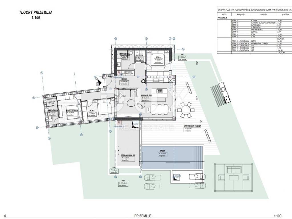EXKLUSIVER NEUBAU!! Die Villa mit drei luxuriösen Wohneinheiten bietet einen atemberaubenden Blick auf die Kvarner-Bucht und die Inseln und liegt gleichzeitig umgeben von viel Grün in einem ruhigen Teil von Rijeka auf Kozala, nur wenige Minuten von allen Einrichtungen entfernt. Jede Wohnung befindet sich auf einer separaten Etage und ist so gestaltet, dass maximale Privatsphäre gewährleistet ist. Innenflächen von fast 100 m und zusätzlich 200 m Terrasse und Garten mit eigenen beheizten Swimmingpools machen diese Apartments einzigartig in dieser Gegend. WICHTIG! Das Anwesen ist mit den neuesten Technologien für Komfort und Energieeffizienz ausgestattet. Mit einer hochwertigen Thermofassade, einem Daikin-Fußbodenheiz- und -kühlsystem der Kategorie A+++ und einer Wärmepumpe mit integriertem Warmwasserspeicher genießen zukünftige stolze Eigentümer das ganze Jahr über perfekte Bedingungen. Fußbodenheizung im gesamten Stockwerk und Ventilatorkonvektoren in allen Räumen. Neun Parkplätze, davon drei mit Ladestationen für Elektrofahrzeuge, tragen zusätzlich zur Zweckmäßigkeit dieser Luxusvilla bei. Einzigartige Wohnung im Erdgeschoss modern gestaltet, luxuriös und praktisch. Nettofläche 96 m, drei geräumige Schlafzimmer (Hauptschlafzimmer mit Badezimmer inklusive), zwei moderne Badezimmer, offenes Wohnzimmer mit Küche und Esszimmer. Eine großzügige Terrasse von 53 m mit Essbereich und Küche im Freien eignet sich ideal für Zusammenkünfte im Freien. Außerdem gibt es einen privaten Garten und einen beheizten Gegenstrompool von 24 m, der mit einer Elektrolyseanlage ausgestattet und mit Folie ausgekleidet ist. Zur Wohnung gehören 3 private Parkplätze, einer davon mit Tankstelle. Ruhige Wohngegend mit wunderschönem Panoramablick auf das Meer!! Die Fertigstellung des Baus ist für Mitte 2025 geplant. Die Wohnungen werden unmöbliert verkauft, sodass den stolzen Eigentümern die Möglichkeit bleibt, die Räumlichkeiten nach ihrem eigenen Geschmack zu gestalten. Lassen Sie sich die Gelegenheit nicht entgehen und sichern Sie sich Ihr zukünftiges Zuhause!