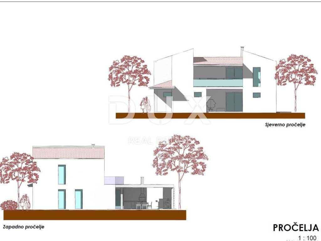 ISTRIEN, KAŠTELIR Baugrundstück mit konzeptionellem Design und Meerblick