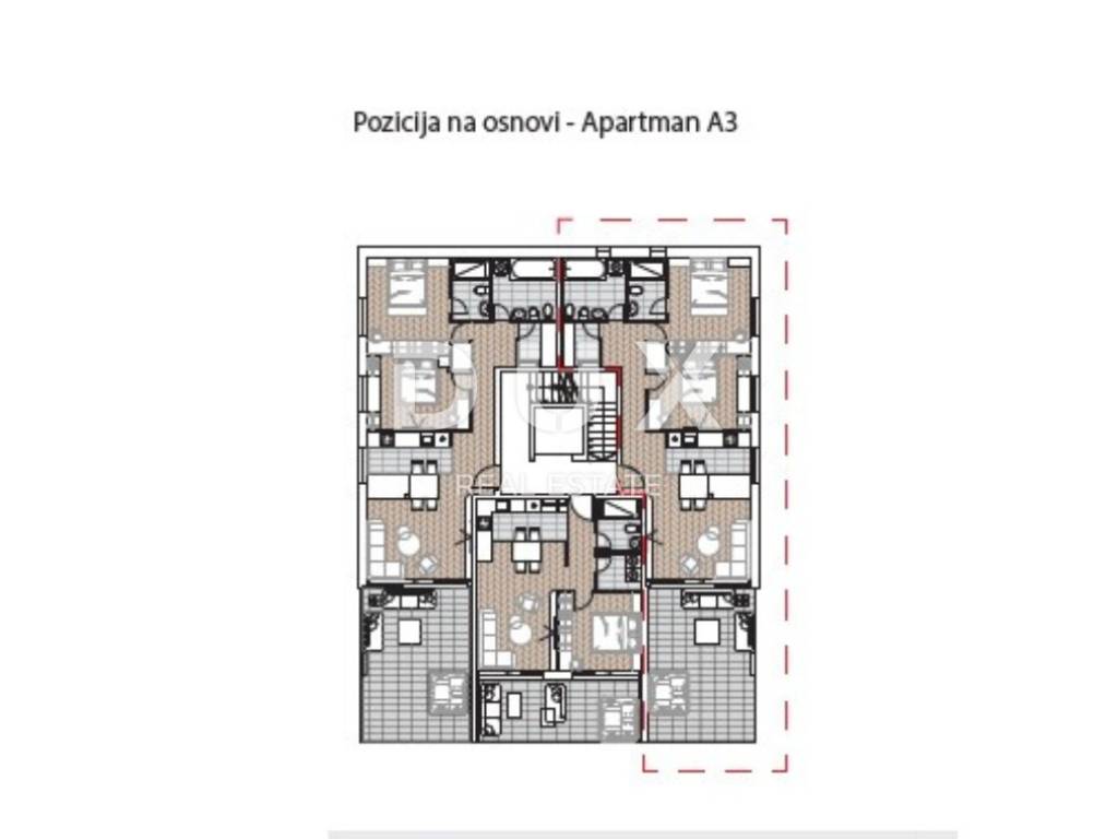 Wir bieten eine exklusive Wohnung A3 mit einer Fläche von 91,47 m im ersten Stock eines Neubaus oberhalb des Zentrums von Opatija, mit großer Terrasse und Garage. Die Wohnung besteht aus zwei Schlafzimmern mit eigenem Bad, einem schönen offenen Wohnzimmer, Esszimmer und Küche mit einer Fläche von 24,39 m.