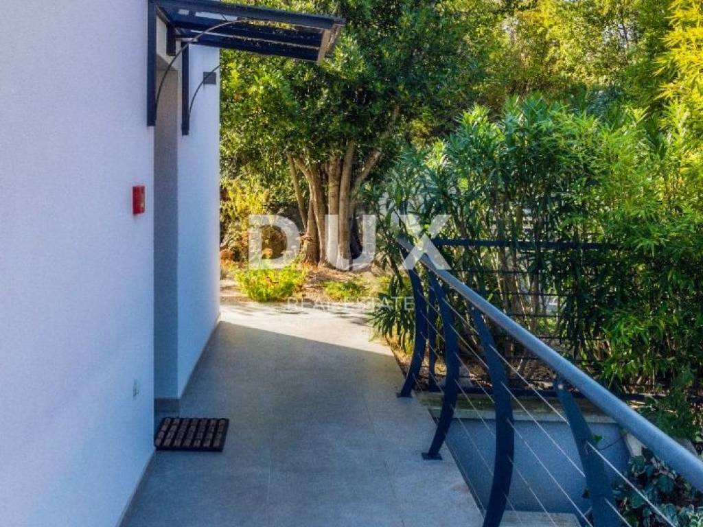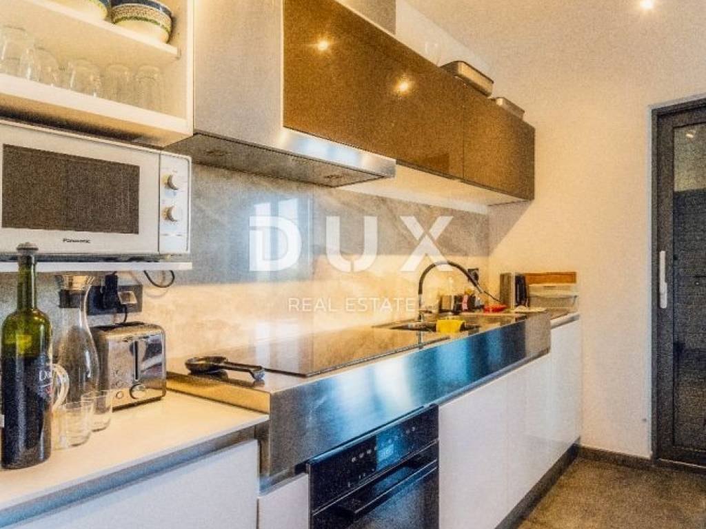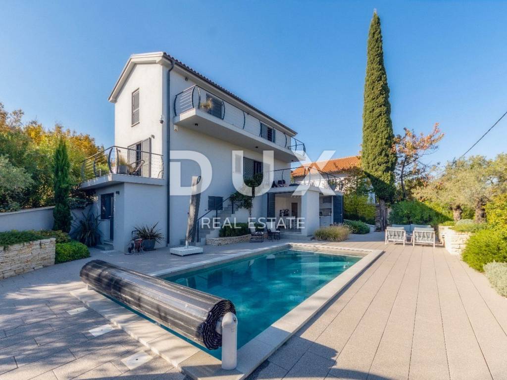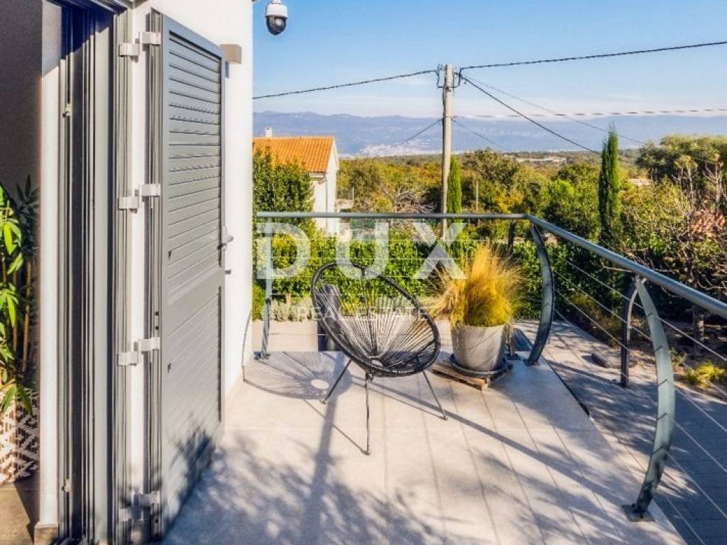 Zum Verkauf steht ein luxuriös eingerichtetes Haus auf der Insel Krk, in ruhiger Lage in Dobrinjština, nur 10 Gehminuten vom schönen Strand und dem Meer entfernt. Dieses moderne und elegante Anwesen bietet die perfekte Mischung aus Komfort, Luxus und nachhaltigen Technologien, ideal zum Wohnen oder Investieren. Das Haus mit einer Gesamtfläche von 300 m verteilt sich auf drei Etagen. Im Erdgeschoss gibt es ein Studio-Apartment, eine Sommerküche, einen ausgestatteten Fitnessraum, eine Sauna und einen 9 Meter langen beheizten Pool, der das ganze Jahr über zum Vergnügen einlädt. Im ersten Stock befindet sich eine zweistöckige Dreizimmerwohnung. Die untere Etage besteht aus einem geräumigen Wohnzimmer, das in einem offenen Konzept mit der Küche und dem Esszimmer verbunden ist, einem Zimmer mit eigenem Bad und einer Gästetoilette. Das Wohnzimmer führt zu einer großen Terrasse und einem Balkon. Die Terrasse bietet einen Panoramablick auf das Meer, der für die Entspannung von unschätzbarem Wert ist. Im Obergeschoss befinden sich zwei gemütliche Schlafzimmer mit jeweils eigenem Bad. Der 400 m große Garten ist sorgfältig mit mediterranen Pflanzen gestaltet, die eine entspannende Atmosphäre schaffen. Es gibt drei überdachte Parkplätze mit einer Ladestation für Elektroautos. Das Haus ist mit modernen Technologien ausgestattet: Der Pool wird durch eine Wärmepumpe beheizt, das Wasser wird durch Sonnenkollektoren erwärmt und die Heizung und Kühlung des gesamten Hauses wird durch hochwertige Daikin-Klimaanlagen gewährleistet. In den Badezimmern gibt es Fußbodenheizung. Die Lage des Hauses bietet Privatsphäre und Ruhe und liegt gleichzeitig in unmittelbarer Nähe aller Einrichtungen, die die Insel Krk bietet: Strände, Restaurants, Geschäfte und Sehenswürdigkeiten. Die Nähe zum Meer, der hohe Baustandard und die luxuriöse Ausstattung machen diese Immobilie zur idealen Wahl für diejenigen, die ein exklusives Zuhause oder eine Investition mit großem touristischem Potenzial suchen.
