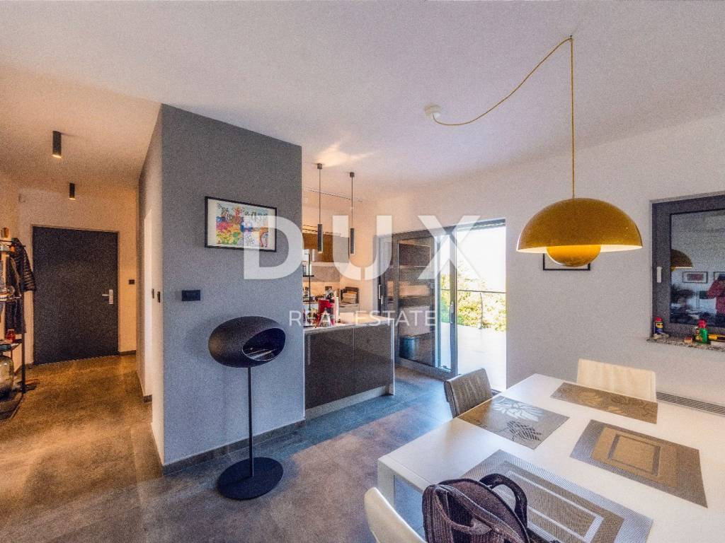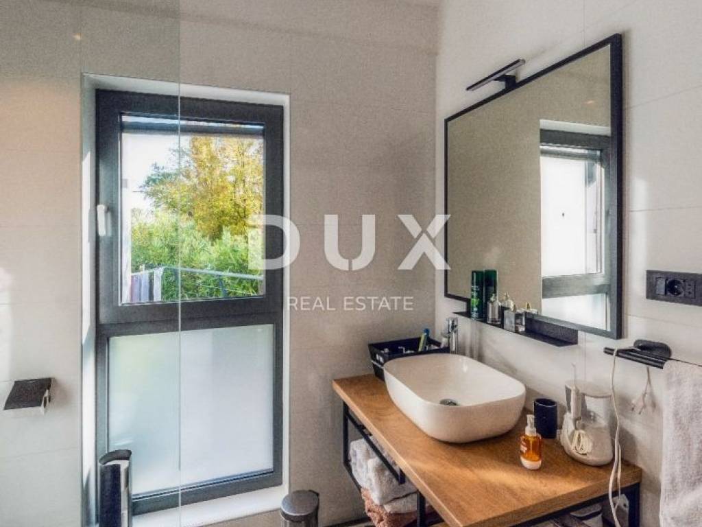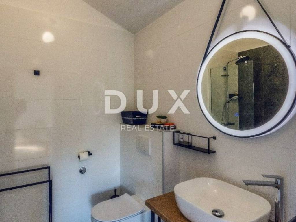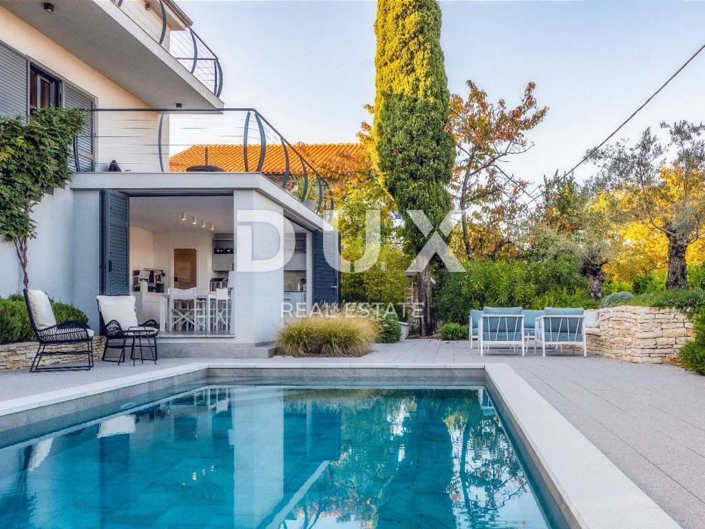 Zum Verkauf steht ein luxuriös eingerichtetes Haus auf der Insel Krk, in ruhiger Lage in Dobrinjština, nur 10 Gehminuten vom schönen Strand und dem Meer entfernt. Dieses moderne und elegante Anwesen bietet die perfekte Mischung aus Komfort, Luxus und nachhaltigen Technologien, ideal zum Wohnen oder Investieren. Das Haus mit einer Gesamtfläche von 300 m verteilt sich auf drei Etagen. Im Erdgeschoss gibt es ein Studio-Apartment, eine Sommerküche, einen ausgestatteten Fitnessraum, eine Sauna und einen 9 Meter langen beheizten Pool, der das ganze Jahr über zum Vergnügen einlädt. Im ersten Stock befindet sich eine zweistöckige Dreizimmerwohnung. Die untere Etage besteht aus einem geräumigen Wohnzimmer, das in einem offenen Konzept mit der Küche und dem Esszimmer verbunden ist, einem Zimmer mit eigenem Bad und einer Gästetoilette. Das Wohnzimmer führt zu einer großen Terrasse und einem Balkon. Die Terrasse bietet einen Panoramablick auf das Meer, der für die Entspannung von unschätzbarem Wert ist. Im Obergeschoss befinden sich zwei gemütliche Schlafzimmer mit jeweils eigenem Bad. Der 400 m große Garten ist sorgfältig mit mediterranen Pflanzen gestaltet, die eine entspannende Atmosphäre schaffen. Es gibt drei überdachte Parkplätze mit einer Ladestation für Elektroautos. Das Haus ist mit modernen Technologien ausgestattet: Der Pool wird durch eine Wärmepumpe beheizt, das Wasser wird durch Sonnenkollektoren erwärmt und die Heizung und Kühlung des gesamten Hauses wird durch hochwertige Daikin-Klimaanlagen gewährleistet. In den Badezimmern gibt es Fußbodenheizung. Die Lage des Hauses bietet Privatsphäre und Ruhe und liegt gleichzeitig in unmittelbarer Nähe aller Einrichtungen, die die Insel Krk bietet: Strände, Restaurants, Geschäfte und Sehenswürdigkeiten. Die Nähe zum Meer, der hohe Baustandard und die luxuriöse Ausstattung machen diese Immobilie zur idealen Wahl für diejenigen, die ein exklusives Zuhause oder eine Investition mit großem touristischem Potenzial suchen.