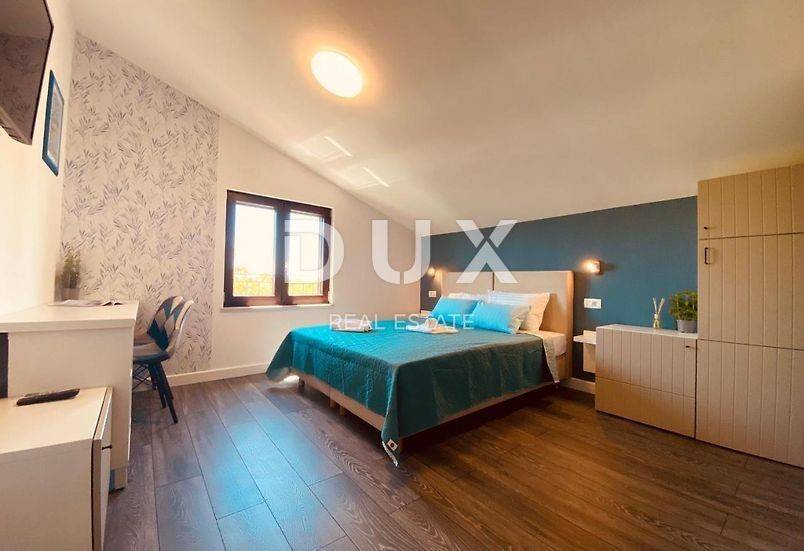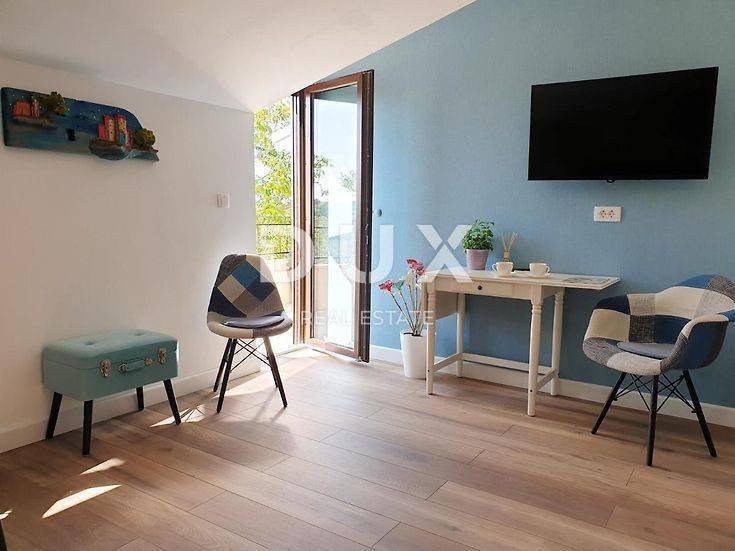 Dieses attraktive Familienapartment liegt nur wenige Autominuten vom unvermeidlichen Zentrum von Rovinj entfernt. Es handelt sich um eine renovierte Wohnung in einem kleineren Gebäude mit nur wenigen Wohneinheiten. Die Wohnung befindet sich in einer ruhigen und ruhigen Lage, die Ihrer Aufmerksamkeit würdig ist, abseits von Menschenmassen und Lärm, und alles, was Sie für den Alltag benötigen, ist nur 500 m von der Wohnung entfernt. BESCHREIBUNG DER WOHNUNG: Diese möblierte Wohnung befindet sich im zweiten Stock eines kleineren Privatgebäudes und umfasst insgesamt 75,79 m2 Wohnfläche. Das Besondere an dieser Wohnung ist, dass sie derzeit in zwei Wohneinheiten aufgeteilt ist, wobei es mit kleinen und einfachen Umbauten möglich ist, sie zu einer kompletten Wohneinheit zusammenzufügen. So stellt die erste kleinere Einheit ein größeres Schlafzimmer im Hotelstil dar, das tatsächlich über einen eigenen Schlafbereich, eine kleinere Sitzecke, ein eigenes Badezimmer und eine schöne Terrasse mit Blick ins Grüne verfügt. Die zweite größere Einheit ist ein Apartment mit zwei Schlafzimmern, jedes mit eigenem Bad, eines davon mit eigener Terrasse mit Blick ins Grüne, außerdem besteht sie aus einem Wohnzimmer mit Küche und einem kleineren Wohnzimmer . Es ist wichtig zu erwähnen, dass es mit ein paar kleinen Änderungen möglich ist, die erste und zweite Einheit zu einer Wohnung zusammenzuschließen und so einen größeren Wohnraum zu erhalten, der aus 3 Schlafzimmern bestehen würde oder in den man sich nach der Verbindung umwandeln könnte ein Schlafzimmer in ein komfortables und geräumiges Wohnzimmer umwandeln und so eine komfortablere Wohnung mit zwei Schlafzimmern, einem großen Wohnzimmer und einer separaten Küche mit Esszimmer erhalten. In Anbetracht des Konzepts dieser Wohnung stellt sie eine hervorragende Gelegenheit dar, die seltene Flexibilität bei der Anpassung an Ihre eigenen Bedürfnisse und Wünsche bietet. Hervorzuheben ist zusätzlich, dass die Wohnung durch die gute Ausrichtung nach Südwesten den ganzen Tag über Tageslicht verfügt. ZUSÄTZLICHE INFORMATIONEN: * Das Gebäude verfügt über alle notwendigen Unterlagen, die Wohnungen liegen auf zwei Ebenen und die Eigentumsverhältnisse an der Wohnung sind in Ordnung. * Im Preis der Wohnung sind zwei markierte Parkplätze auf dem eingerichteten Parkplatz vor dem Gebäude inbegriffen. * Die Wohnung bzw. jeder Raum der Wohnung ist mit hochwertigen Klimaanlagen mit Wechselrichtern zum Heizen und Kühlen des Raumes ausgestattet. * Bei der Renovierung und Einrichtung der Wohnung wurde besonderes Augenmerk auf jedes Detail gelegt, sodass nur hochwertige Materialien verwendet wurden. * Die Wohnung wird möbliert verkauft, wie auf den Bildern zu sehen ist. * Während der Renovierung haben die Eigentümer sämtliche Strom-, Wasser-, Abwasser- und Internetinstallationen erneuert. Diese Immobilie bietet ihren zukünftigen Eigentümern zahlreiche Möglichkeiten, so ist es mit der aktuellen Raumaufteilung der Wohnung möglich, jede Einheit einzeln oder zusammen zu mieten und darüber hinaus eine Rendite der Investition zu gewährleisten. Wenn Sie die Wohnung dennoch nur für private Zwecke nutzen möchten, dann haben Sie die Möglichkeit, beide Einheiten zu einer zu verbinden und so eine großzügige, Ihren Bedürfnissen entsprechende Wohnung zu erhalten. Darüber hinaus kann diese Wohnung als hervorragende Gelegenheit für Ihre eigene Investition für touristische Zwecke genutzt werden, sodass Sie jedes Schlafzimmer separat mieten können, während das Wohnzimmer dann einen gemeinsamen Ort für geselliges Beisammensein und Unterhaltung darstellt. Für weitere Fragen, notwendige Informationen oder den Wunsch, einen Besichtigungstermin zu vereinbaren, können Sie sich gerne vertrauensvoll an uns wenden!