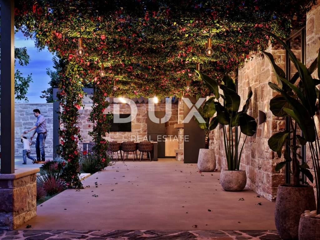 Eines der schönsten Juwelen Istriens ist die Stadt Bale an der Westküste Istriens. Diese historische Steinstadt liegt auf einem Hügel umgeben von Olivenhainen und Weinbergen und ist 5 Kilometer vom Meer und der unberührten Meeresküste entfernt. Der 45. Breitengrad verläuft durch die Gemeinde Bale, also ihren südlichsten Teil, was bedeutet, dass sie sich am idealsten Ort befindet auf halber Strecke zwischen dem Äquator und dem Nordpol. Die durchschnittliche Jahrestemperatur in Bale beträgt 14 Grad Celsius und es gibt durchschnittlich 2.400 Sonnenstunden pro Jahr. In dieser malerischen istrischen mittelalterlichen Stadt, umgeben von viel Grün, steht ein makelloses Steinhaus mit einem abgelegenen Pool zum Verkauf. Neben der Mikrolage zeichnet sich die Immobilie durch die Bauqualität aus, die langfristige Zufriedenheit und Wohnqualität garantiert. Unter Respektierung der traditionellen autochthonen Werte und der Architektur des istrischen Erbes wurde aus einem alten, heruntergekommenen istrischen Steinhaus ein wahres kleines Paradies oder eine hedonistische Ecke geschaffen, als perfekte Kombination aus Tradition und Moderne mit einem funktionalen Innen- und Außenbereich. Es handelt sich um eine Wohneinheit, deren Fläche auf zwei Etagen verteilt ist; Erdgeschoss und erster Stock. Das Erdgeschoss besteht aus einem offenen Raumkonzept, das Wohnzimmer, Esszimmer und Küche mit Zugang zu einer mit einer Pergola überdachten Terrasse vereint, die eine Sommerküche, ein Gäste-WC und einen Abstellraum enthält. Die Etage besteht aus drei Schlafzimmern mit eigenem Bad. Der Garten ist komplett eingezäunt und elegant im mediterranen Stil dekoriert. Für die perfekte Harmonie sorgt der 34 m große Swimmingpool. Diese perfekt integrierte Immobilie ist eine außergewöhnliche Gelegenheit für ein komfortables Familienleben sowie eine Investitionsinvestition in ein touristisches Vermietungsunternehmen. Der angegebene Preis der Immobilie bezieht sich auf die Endausführung ohne Möbel, die eine Enddekoration nach den eigenen Wünschen und Vorlieben ermöglicht.