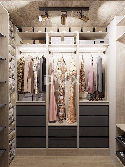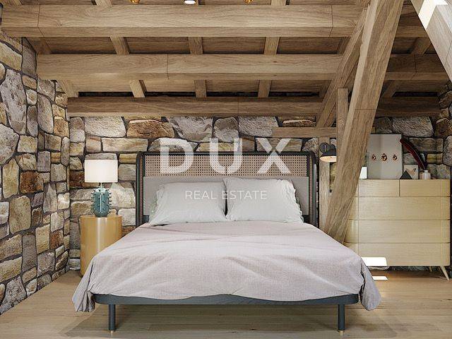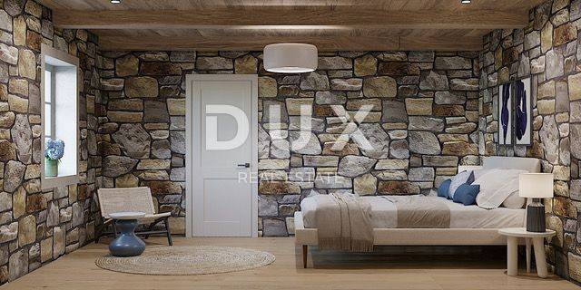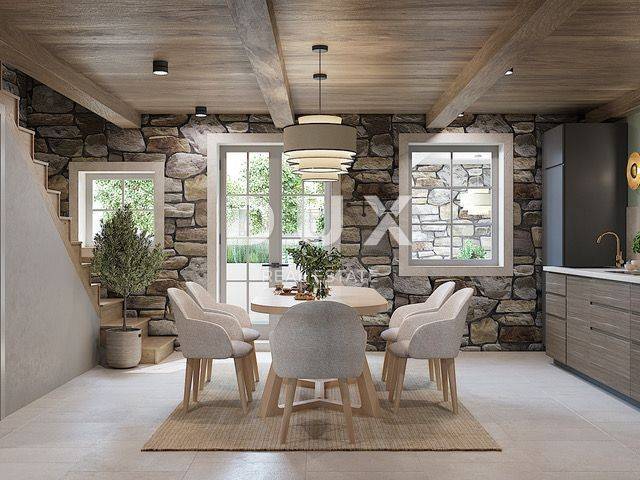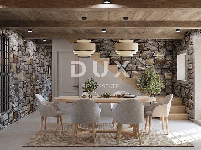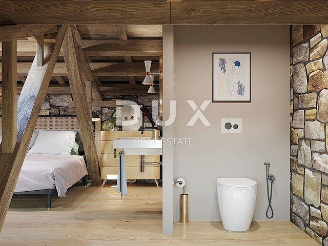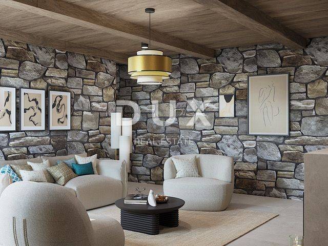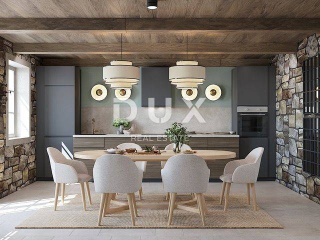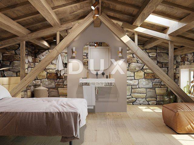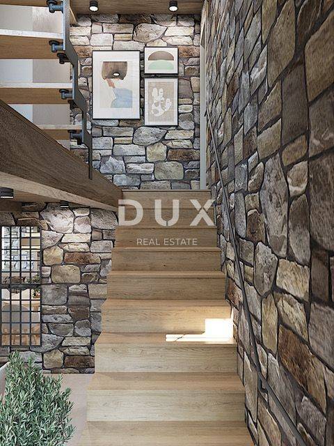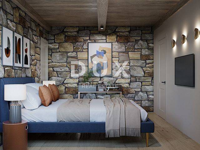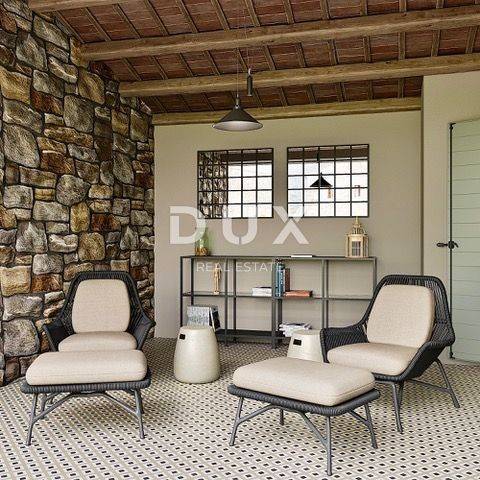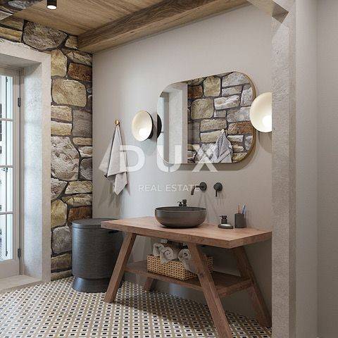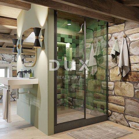 Die Gemeinde Kaštelir liegt an der Westküste Istriens, im nordöstlichen Hinterland, 13 Kilometer von Poreč der kroatischen Touristenmetropole entfernt. Die Einheimischen sind hauptsächlich im Kleingewerbe und in der Landwirtschaft tätig sie sind bekannte Produzenten von Wein, Kartoffeln, Olivenöl und Honig. Viele Weinkeller sind in den Weinstraßenkarten der Gespanschaft Istrien eingezeichnet. Die Umgebung ist geschmückt mit dem Grün der Weinberge und Olivenhaine und der fruchtbaren roten Erde, auf der fleißige Einheimische Obst und Gemüse anbauen. Direkt in Kaštelir steht ein wunderschönes renoviertes Steinhaus in einem ruhigen Teil von Kaštelir mit Blick auf das Meer vom ersten Stock aus zum Verkauf! Das Anwesen besteht aus einem Keller, Erdgeschoss, Obergeschoss und einer hohen Mansarde. Der Keller ist als Weinraum konzipiert, den der zukünftige Eigentümer nach seinen eigenen Wünschen gestalten kann. Das Erdgeschoss besteht aus einem Wohnzimmer, einer Küche mit Esszimmer und einer Gästetoilette. Eine Innentreppe führt in den ersten Stock, wo sich zwei Schlafzimmer mit jeweils eigenem Bad befinden, von denen eines Zugang zu einer überdachten Terrasse hat. Die Innentreppe führt weiter in den hohen Mansardenbereich, wo sich zwei weitere Schlafzimmer mit jeweils eigenem Bad befinden. Es gibt einen elektrischen Kamin im Wohnzimmer und das gesamte Erdgeschoss verfügt über eine Fußbodenheizung mit Wärmepumpe, während in jedem Raum eine Klimaanlage zum Heizen und Kühlen installiert ist. Der gesamte Innenraum ist rustikal eingerichtet und bewahrt den Hauch der Vergangenheit. Bei der Renovierung wurde auf jedes Detail geachtet und die Originalteile des Steins beibehalten. Im Garten gibt es einen Swimmingpool und eine Sauna. Das gesamte Grundstück ist von einer Steinmauer umgeben, die für zusätzliche Privatsphäre und Ruhe sorgt, außerdem wird Grün als Hecke gepflanzt. Der gesamte Garten und das Erdgeschoss sind mit einheimischem istrischem Stein bedeckt und die Außenschreinerei ist aus Holz. Das Haus wird teilmöbliert verkauft, d. h. mit einer ausgestatteten Küche und ausgestatteten Badezimmern sowie einer Gästetoilette. Dabei kann der zukünftige Eigentümer das Haus nach seinen eigenen Wünschen gestalten oder es mit einem Aufpreis von 55.000 Euro komplett ausstatten, wie in den Visualisierungen zu sehen ist. Für weitere Informationen wenden Sie sich bitte an die Agenten.