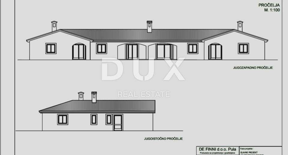 Krnica ist ein Dorf 9 km nordöstlich des Gemeindezentrums von Marčana und liegt auf der Hochebene oberhalb des Hafens von Krnica, an der Kreisstraße ŠišanKavranRakalj, also am Abzweig der Kreisstraße nach Prodol auf der Staatsstraße PulaBarban. Die Einwohner betreiben Landwirtschaft (Weinbau, Getreide, Gemüse), Fischerei und tertiäre Tätigkeiten. In derselben Siedlung steht ein großes Grundstück mit Baugenehmigung für bis zu sieben Gebäude zum Verkauf. In der Nähe von Krnica, nur 6 km vom Meer entfernt, befindet sich ein großes landwirtschaftliches Grundstück von 35.000 m2. Auf dem Grundstück wurde eine Baugenehmigung für ein Wohngebäude mit einer Fläche von 400 m2 und 6 Nebengebäuden für landwirtschaftliche Zwecke eingeholt. Das Wohngebäude besteht aus 3 Wohneinheiten. Nebengebäude bestehen aus: - Lager für Oliven und Wein 200 m2 - Lager für Werkzeuge und Maschinen 100 m2 - Lager für Feigen 100 m2 - Gewächshaus für Gemüse und Blumen 128 m2 - Stall für Ziegen 200 m2 - Lagerung und Verarbeitung von Gemüse 128 m2 Die Das Grundstück ist als Teil eines Olivenhains (16.600 m2), eines Feigenbaums (8.800 m2) sowie einer Rasenfläche, eines Gemüsegartens und eines Blumengartens (7.500 m2) vorgesehen. Die Straßen- und Parkfläche innerhalb des Komplexes beträgt 2.000 m2. Wasser und Strom sind auf dem Feld vorhanden und die Nebenkosten werden bezahlt. Der Bau kann sofort beginnen.