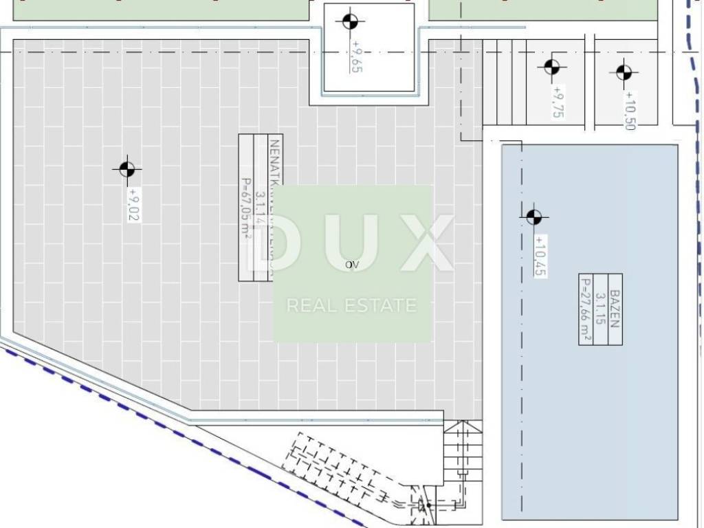 Im speziellen DUX-Angebot heben wir einen exklusiven Neubau mit Garage, Terrasse, Meerblick, nah am Meer und Opatija hervor. Apartment 3-B im 2. Stock mit einer großen, geräumigen Dachterrasse mit Swimmingpool besteht aus 179.561 m, einem schönen und hellen offenen Raum mit Küche, Esszimmer und Wohnzimmer von 49,91 m. Das Wohnzimmer ist mit einer privaten Terrasse verbunden. Das große Dach und die private Terrasse verfügen über einen 27,66 m großen Swimmingpool mit einer Sonnenterrasse, die eine wunderschöne Aussicht bietet.
