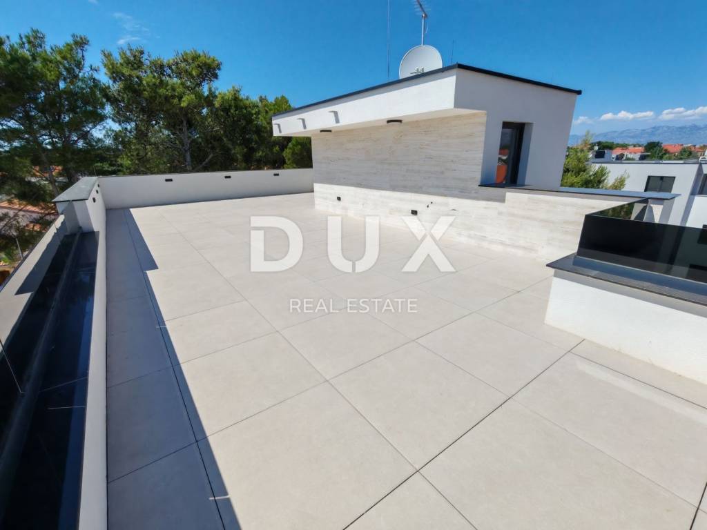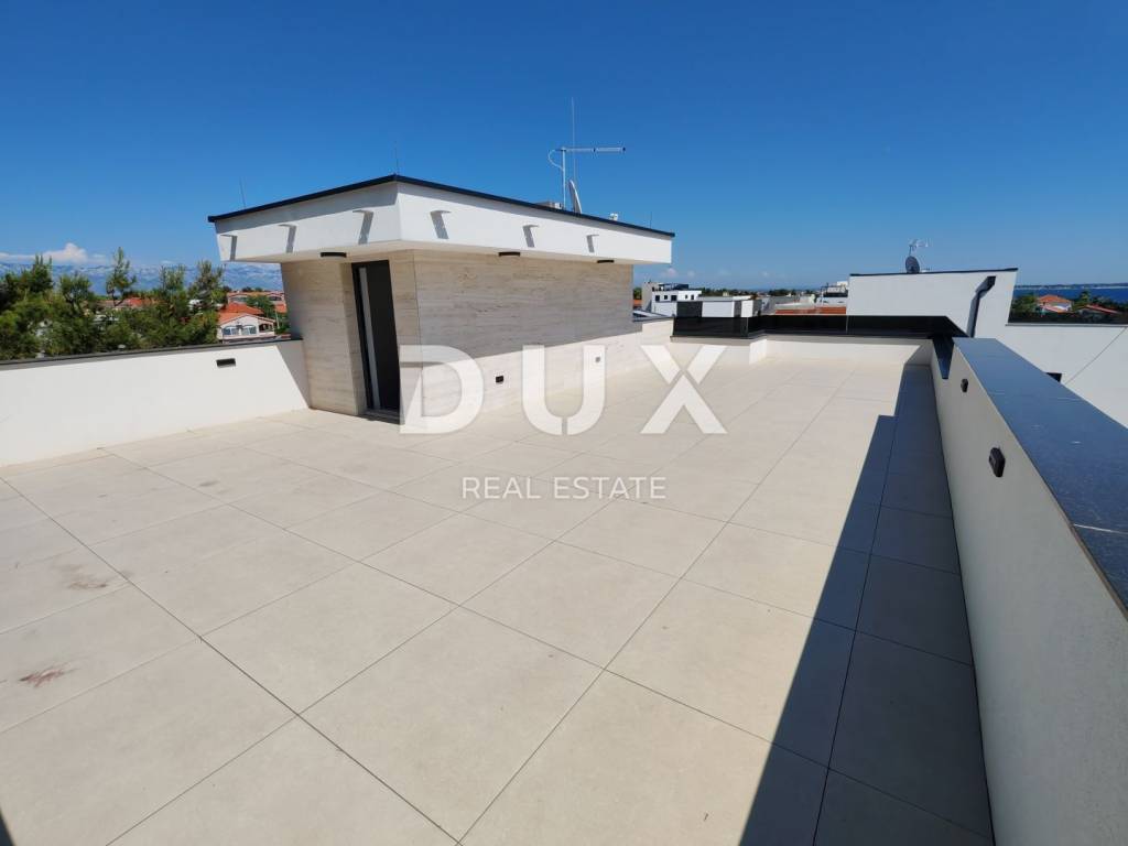 Penthouse zum Verkauf mit Meerblick im zweiten Stock in einer der begehrtesten Lagen auf Vir, nur 160 Meter vom wunderschönen Strand Jadro entfernt. In einer ruhigen Sackgasse im Herzen von Vir gelegen, bietet dieses neue Gebäude eine außergewöhnliche Gelegenheit für diejenigen, die die perfekte Kombination aus Komfort und Luxus suchen. Die 114,16 m große Wohnung wurde sorgfältig entworfen, um maximalen Komfort und Funktionalität zu bieten. Es besteht aus einem geräumigen Flur, zwei eleganten Schlafzimmern, eines davon mit eigenem Bad, weiteren Badezimmern, einer modernen Küche, die mit dem Esszimmer und dem Wohnzimmer verbunden ist, und einer geräumigen Terrasse, die sich ideal zum Entspannen eignet. Besonderes Augenmerk wird auf die Qualität der Konstruktions- und Verarbeitungsdetails gelegt. Das Gebäude verfügt über hochwertige anthrazitfarbene Kunststoffschreinereiarbeiten mit dreischichtigem Glas, elektrische Jalousien, Moskitonetze sowie hochwertige Eingangstüren aus Aluminium. Die Fassade ist mit 10 cm Styropor isoliert, während die Terrassen mit elegantem Travertinstein belegt sind. Ein schwarzer Zaun aus zweischichtigem gehärtetem Glas, handgefertigte Innenschreinerei, hochwertige Keramik im Format 90 90 cm in der gesamten Wohnung sowie luxuriöse Badelemente der Marken Geberit, Grohe und Aquaestil sorgen für einen hohen Wohnstandard. Zu den weiteren Annehmlichkeiten zählen elektrische Fußbodenheizung in den Bädern, Klimaanlagen in den Schlafzimmern und im Wohnzimmer, einbruchhemmende und feuersichere Eingangstüren zu den Wohnungen sowie eine Video-Gegensprechanlage. Knauf-Decken mit integrierter LED-Beleuchtung, sowohl für die Arbeits- als auch für die Ambientebeleuchtung, unterstreichen die Eleganz des Raums zusätzlich, während LED-Streifen auf den Terrassen eine angenehme Atmosphäre für abendliche Zusammenkünfte schaffen. Die Wohnung im zweiten Stock verfügt über 2 Parkplätze und eine komplette Dachterrasse. Diese einmalige Gelegenheit ist von der Grundsteuer befreit und die Fertigstellung des Baus der Gebäude A und B ist für Anfang 2025 geplant, während die Fertigstellung von Gebäude C im Herbst desselben Jahres erwartet wird. Lassen Sie sich die Gelegenheit nicht entgehen! Kontaktieren Sie uns und vereinbaren Sie einen Besichtigungstermin für diese außergewöhnliche Wohnung, die Ihr neues Zuhause oder ein idealer Urlaubsort werden kann.