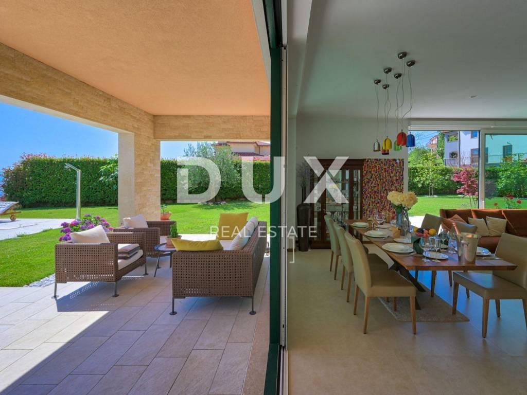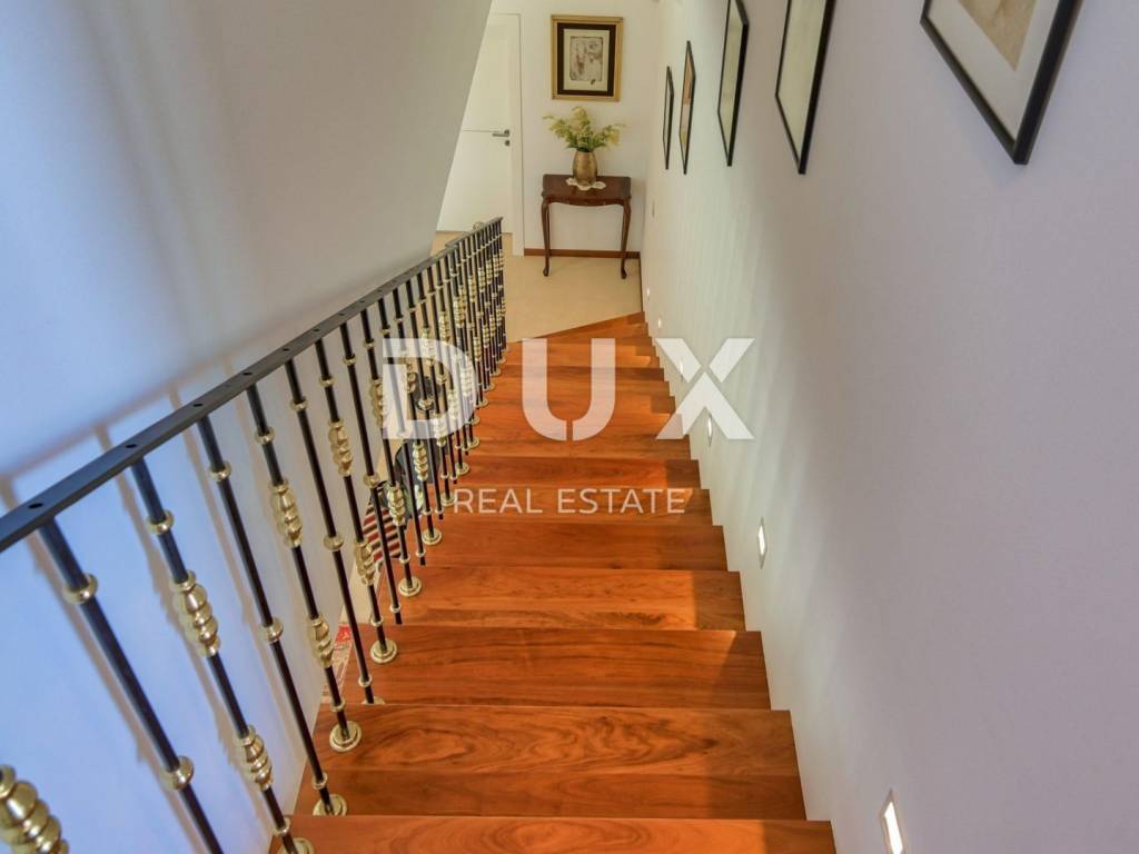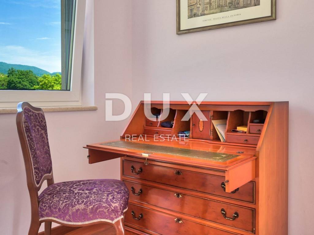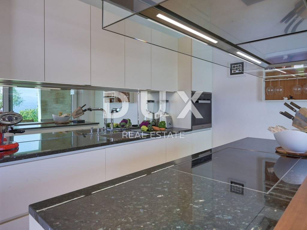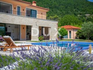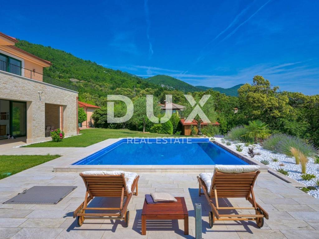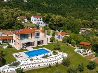 Wir sind stolz, Ihnen diese hochwertige und luxuriöse Villa auf einem hügeligen Gelände in einer kleinen und ruhigen Siedlung in der Nähe der Stadt Lovran präsentieren zu können. Es handelt sich um eine echte Familienvilla, die Sie sicherlich nicht gleichgültig lassen wird. Die herrliche Aussicht aus allen Zimmern und dem Garten der Villa ist einfach atemberaubend. In Bezug auf die Lage befindet sich die Villa in einer äußerst ruhigen und attraktiven Lage in der Nähe der Stadt Lovran, die auf eine lange Vergangenheit und eine hundertjährige Tradition im Tourismus zurückblickt. Das warme und hochwertige mediterrane Klima, die üppige Vegetation und die günstige geografische Lage ermöglichten die starke Entwicklung des Tourismus an diesem Ort und so wurde Lovran neben Opatija zum wichtigsten Ort an der berühmten Riviera. BESCHREIBUNG DES EIGENTUMS; Es handelt sich um eine Familienvilla mit einer Gesamtwohnfläche von 343,95 m2, gebaut als mehrstöckiges Gebäude. So gibt es im Erdgeschoss, am Eingang der Villa, einen Vorraum, der uns anmutig empfängt und uns weiter zu den anderen Erdgeschossräumen der Villa führt. In der luxuriös ausgestatteten und geräumigen Küche eines renommierten italienischen Herstellers können Sie sich mit Ihrer Familie und Freunden entspannen und Spaß haben. Ihre Lieblingsspezialitäten können Sie im geräumigen Esszimmer genießen, das sich neben der Küche befindet. Etwas abseits liegt ein gemütliches Wohnzimmer mit einem mit brasilianischem Stein verzierten Kamin. Dieser gesamte Raum ist den ganzen Tag über mit Tageslicht bestrahlt, was durch größere Glasschiebewände ermöglicht wird. Durch die gleichen Schiebewände gibt es einen Blick und Zugang auf die überdachte Terrasse, dann auf den mit mediterranen Pflanzen angelegten Garten, einen großzügigen Pool und einen freien Blick auf das Meer und die Kvarner-Inseln. Im Erdgeschoss gibt es einen kleinen Abstellraum sowie ein Gäste-WC. Eine elegante Innentreppe führt in die erste Etage der Villa, wo sich drei geräumige Schlafzimmer mit jeweils eigenem Bad befinden, während das Hauptschlafzimmer über einen privaten begehbaren Kleiderschrank verfügt. Darüber hinaus verfügt jedes Schlafzimmer über eine eigene Terrasse mit dem gleichen unglaublichen Panoramablick auf das endlose Meer und die Kvarner-Inseln. Es handelt sich um eine Villa, die ausschließlich für die Bedürfnisse des Eigentümers gebaut und mit Hilfe von Top-Designern so dekoriert wurde, dass die Villa Luxus ausstrahlt und zeitlos bleibt. Daher achteten die Eigentümer absolut auf jedes Detail und legten gleichzeitig größten Wert auf den Komfort und die Funktionalität jedes Zimmers. Ebenso legten die Eigentümer großen Wert auf den weitläufigen Garten von 3.442,00 m, der vollständig eingezäunt und vor jeder Sicht verborgen ist und ein Höchstmaß an Privatsphäre und Ruhe bietet. Der Innenhof der Villa ist mit mediterranen Pflanzen und vielen grünen Feldern geschmückt, die von einem automatischen Bewässerungssystem gepflegt werden, während alle im Garten der Villa befindlichen Inhalte durch malerische Wege verbunden sind. So befindet sich im Garten ein großzügiger Swimmingpool mit Liegewiese, und ein besonderes Detail des Pools ist, dass er durch seine Lage auf dem Feld, die Beschaffenheit des Feldes und den Blick Richtung Meer ein Gefühl von Entspannung vermittelt endlose Verbindung mit dem Meer und den Inseln. In den warmen Sommermonaten haben Sie die Möglichkeit, Ihre Zeit in einer separaten, größeren Sommerküche mit einem echten istrischen Kamin und einer funktionalen Küche sowie Sitzgelegenheiten zu verbringen. Wir müssen erwähnen, dass die Villa auch über einen eigenen Weinkeller verfügt, ein Holzhaus, während Sie sich keine Sorgen um Ihre Blechhaustiere machen müssen, da es auch eine Garage mit zwei Parkplätzen gibt. Für alle Ihre Gäste stehen im Garten mehrere Parkplätze zur Verfügung. WEITERE INFORMATIONEN; * Die Villa ist mit Fußbodenheizung und -kühlung mit einer Wärmepumpe ausgestattet, die auch die Hilfe von Sonnenkollektoren nutzt. * Sowohl von den Terrassen im ersten Stock als auch vom Erdgeschoss und dem gesamten Garten aus hat man einen ebenso Panoramablick auf das Meer. * Beim Bau und der Dekoration der Villa wurden hochwertige und seltene Materialien verwendet, die Luxus und Qualität ausstrahlen. * Die Villa wird möbliert mit allen Möbeln eines renommierten Herstellers mit Signatur verkauft. * Das Eigentum an der Villa ist ordnungsgemäß. STANDORTBESCHREIBUNG; Da es sich um eine äußerst luxuriöse Villa handelt, müssen wir beachten, dass die Eigentümer einen idealen Standort gewählt haben, der zu dieser Art von Villa passt und ihre Mission erfüllt. Die familiäre Atmosphäre zieht sich durch die gesamte Siedlung, alles Notwendige für einen sicheren Alltag befindet sich in unmittelbarer Nähe. Das milde mediterrane Klima und die hügelige Landschaft sorgen für ein besonderes Gefühl bei Ihrem Aufenthalt in dieser Gegend, die saubere und frische Luft sowie die freie Aussicht nehmen Ihnen einfach jeglichen Stress und jede Anstrengung ab und vermitteln ein Gefühl von Luxus und Privilegien. Neben dem Aufenthalt in der Villa ist es wichtig, dass wir Ihnen alles vorstellen, was sich in der unmittelbaren Umgebung befindet. * das Zentrum von Lovran ist nur 6 Autominuten entfernt * das Zentrum von Opatija ist nur 15 Autominuten entfernt * zahlreiche Strände mit kristallklarem und frischem Meer sind 7 Autominuten entfernt * zahlreiche Restaurants und Tavernen sind 5 - bis 7 Autominuten entfernt * Größere Geschäfte sind 5 bis 7 Autominuten entfernt. Kurz gesagt, dies ist eine besondere Immobilie, die Ihre Aufmerksamkeit verdient. Kontaktieren Sie uns gerne, denn wir helfen Ihnen gerne weiter, wenn Sie weitere Fragen haben, Informationen benötigen oder einen Termin zur Besichtigung der Immobilie vereinbaren möchten.
