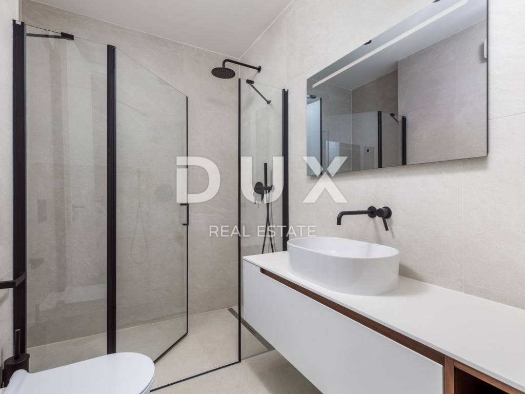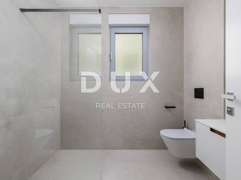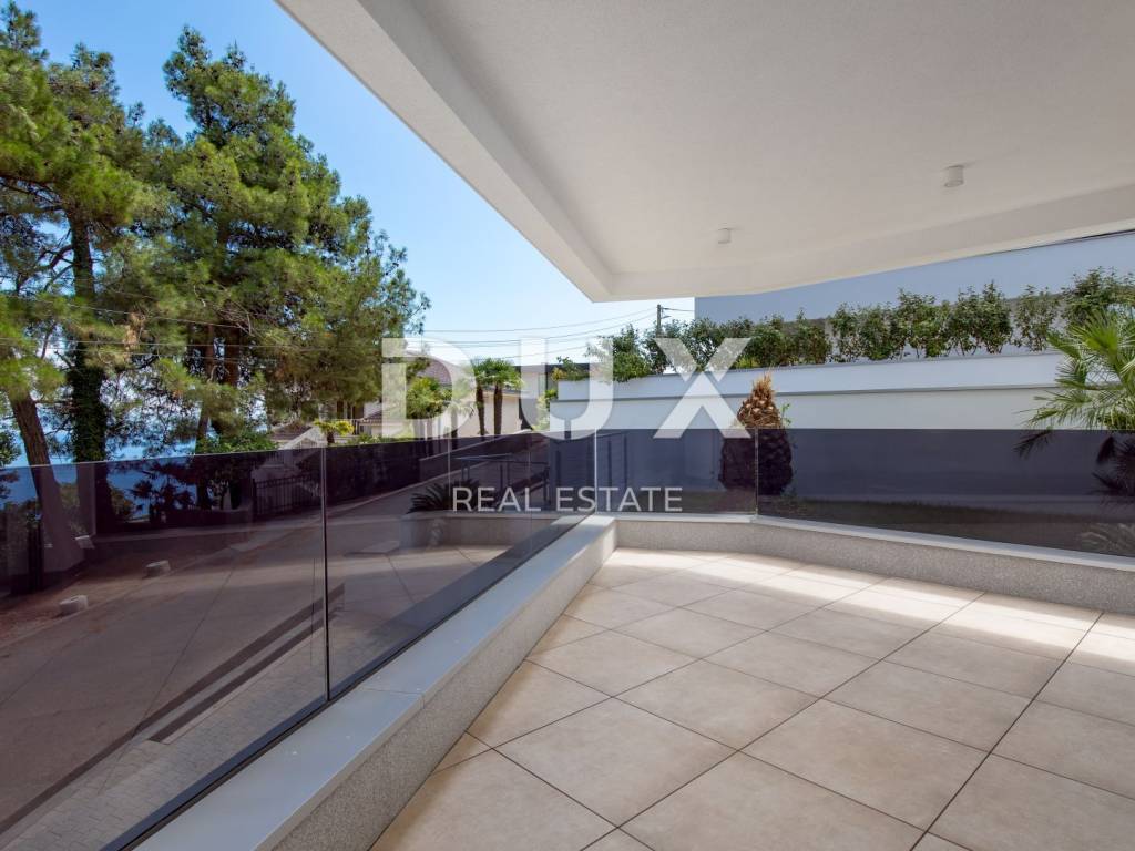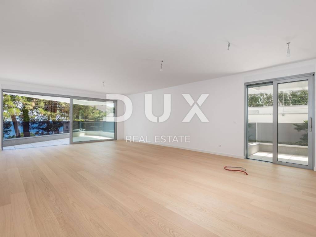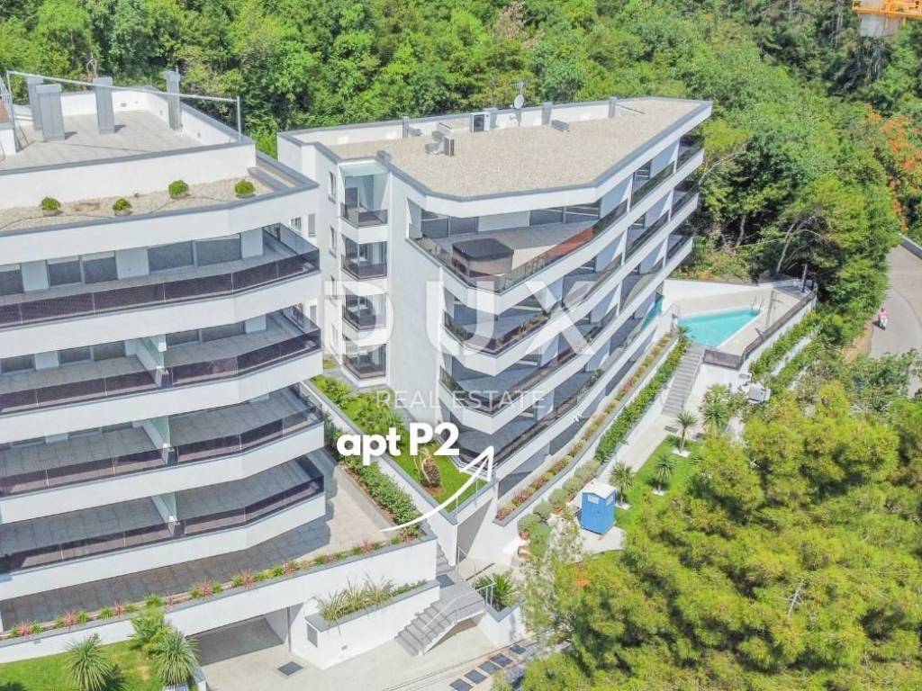 Wir vermitteln den Verkauf einer schönen modernen Wohnung P2 mit einer Fläche von 118,55 m2 oberhalb des Zentrums von Opatija mit Panoramablick auf das Meer, einer Terrasse, einem Garten, einem Aufzug und zwei Parkplätzen. Dieses moderne und exklusive Anwesen zeichnet sich durch seine südliche Ausrichtung mit schöner Aussicht, Glasschiebewänden, die eine freie Sicht ermöglichen, und viel Licht das ganze Jahr über aus. Die Wohnung befindet sich im Erdgeschoss eines exklusiven Neubaus und besteht aus zwei Schlafzimmern, zwei Badezimmern und einer Toilette. Ein schönes offenes Wohnzimmer ist mit dem Esszimmer und der Küche verbunden und aus dem gesamten Raum gibt es einen Ausgang zur Terrasse, wo Sie es ungehindert bei wunderschönem Blick auf das blaue Meer genießen können. Wir heben hervor: - fantastische SCHUCO-Aluminiumschreinerei - erstklassiges Parkett - elektrische Jalousien - erstklassige Sanitärkeramik - italienische Keramik - einbruchsichere Eingangstür - Aufzug - Gemeinschaftspool - energieeffiziente Bauweise und Isolierung Die Wohnung hat Zugang zum Gemeinschaftspool, Außerdem verfügt es über einen Aufzug und zwei Parkplätze, von denen sich einer in der Garage befindet und der andere nicht überdacht ist. Die Lage der Wohnung ist fantastisch: eine ruhige und friedliche Straße oberhalb des Zentrums von Opatija, nahe dem Strand und der Promenade Lungomare. Den Strand erreichen Sie zu Fuß in nur 8 Minuten, mit dem Auto dauert es tatsächlich nur eine Minute. Es ist wichtig darauf hinzuweisen, dass das Gebäude von grünem Wald umgeben ist. Es ist eine perfekte Gelegenheit, eine fantastische Immobilie in einer der schönsten Städte an der Adria zu kaufen. Ideal zum Wohnen, aber auch zur touristischen Vermietung oder Investition.