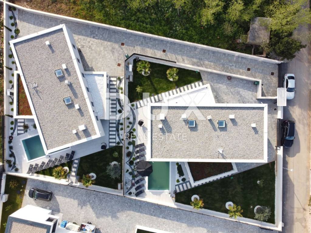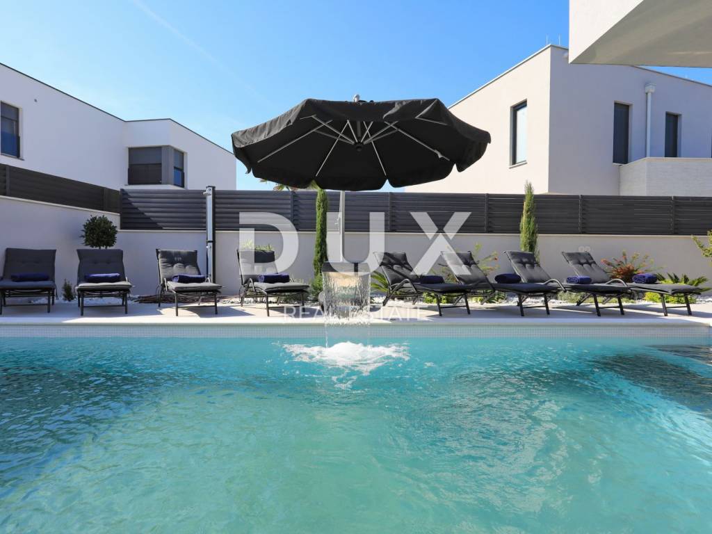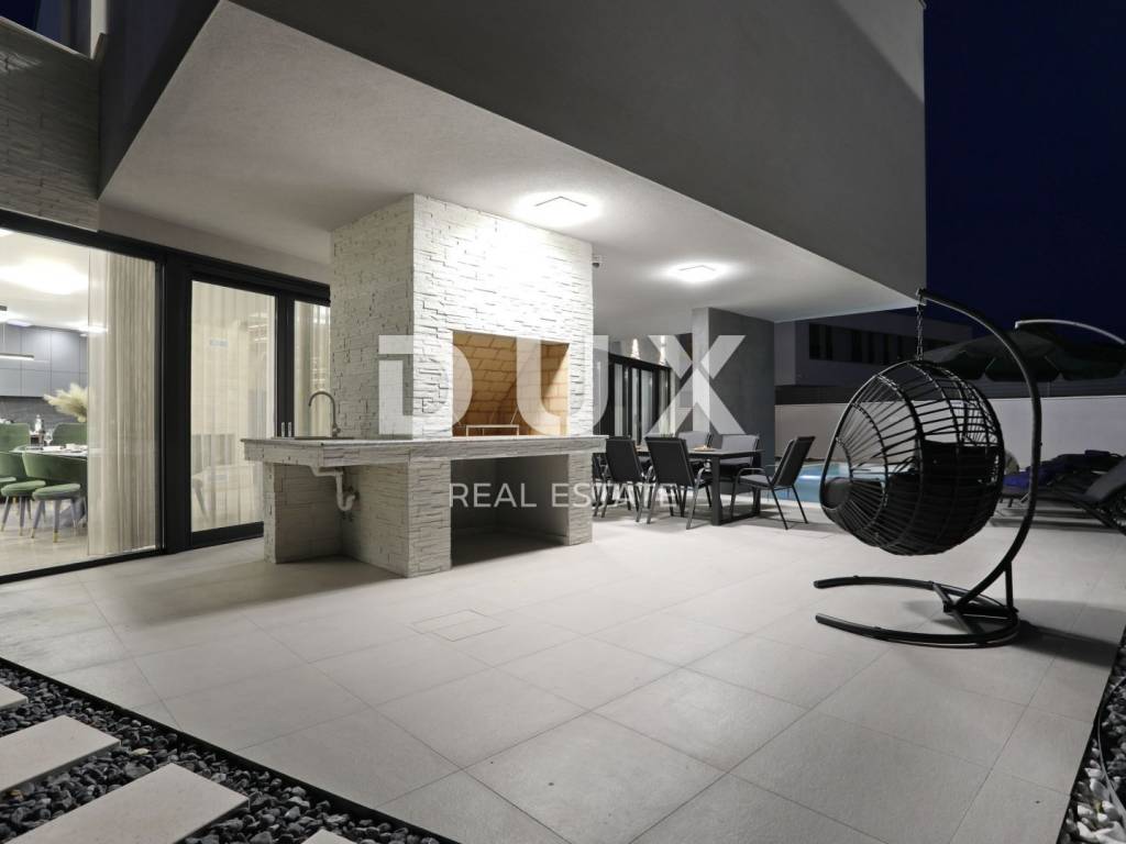 Zum Verkauf steht eine außergewöhnliche Luxusvilla im bezaubernden Zaton, nur 1100 Meter vom kristallklaren Meer entfernt. Dieses makellose neue Gebäude bietet prächtige 198,93 m2 sorgfältig gestalteten und hervorragend dekorierten Raum. Die Villa ist mit einem beheizten Pool und einer hochentwickelten Fußbodenheizung ausgestattet, die sich über das gesamte Haus erstreckt und das ganze Jahr über unvergleichlichen Komfort bietet. Jedes Zimmer verfügt über eine eigene Klimaanlage, außerdem sorgen elegante elektrische Hebe-Schiebewände und eine moderne Wärmepumpe für optimale Energieeffizienz. Diese Immobilie wurde bis ins kleinste Detail sorgfältig eingerichtet und ist bezugsfertig. Edle Keramik und luxuriöses Parkett in den Schlafzimmern, mit handgefertigten Möbeln und in der Küche zeugen von exzellenter Handwerkskunst und höchster Qualität. Ein großzügiger und sorgfältig angelegter Garten, zwei überdachte Parkplätze und eine beeindruckende Terrasse, die von jedem Schlafzimmer aus zugänglich ist, unterstreichen die Exklusivität dieses wunderbaren Hauses zusätzlich. Die Innenaufteilung besticht durch Funktionalität und Stil, darunter ein geräumiges Wohnzimmer, eine luxuriöse Sauna, ein modernes Fitnessstudio, ein elegantes Badezimmer ohne Toilette, eine zusätzliche Toilette, eine praktische Waschküche, eine Speisekammer, eine hervorragende Küche und ein wunderbares Esszimmer Zimmer im Erdgeschoss. Ein eleganter Flur und eine elegante Treppe führen in die erste Etage, wo sich vier geräumige Schlafzimmer befinden, jedes mit Zugang zu einer beeindruckenden Terrasse und einem eigenen luxuriösen Badezimmer. Diese Immobilie ist ein wahres Beispiel für hochwertige Bauweise und makellose Dekoration. Kontaktieren Sie uns, um einen Besichtigungstermin zu vereinbaren und überzeugen Sie sich selbst von allen Vorteilen, die diese einzigartige Villa zu bieten hat. Sehr geehrte Kunden, die Vermittlungsprovision wird gemäß den Allgemeinen Geschäftsbedingungen berechnet. https://www.dux-nekretnine.hr/opci-uvjeti-poslovanja