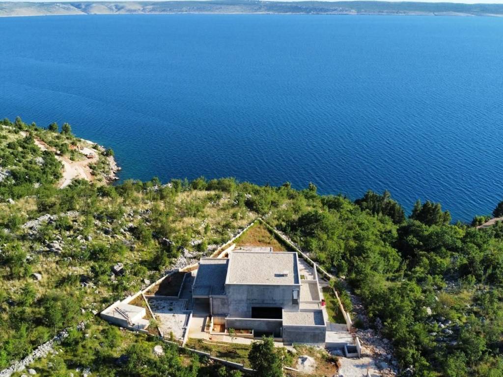 Eine freistehende Villa zum Verkauf in Starigrad in der Nähe von Zadar. Die Villa mit einer Gesamtwohnfläche von 317 m2 wurde auf einem Grundstück von 1514 m2 mit freiem Blick auf das Meer errichtet. Es besteht aus Erdgeschoss und Obergeschoss. Im Erdgeschoss gibt es einen offenen Raum für Wohnzimmer, Küche und Esszimmer, eine zusätzliche Toilette, Waschküche und Garage. Im Obergeschoss befinden sich drei Schlafzimmer mit angeschlossenen Loggien und zwei Badezimmer. Im großzügigen Innenhof der Villa gibt es einen Swimmingpool, einen Garten, einen Grill und einen Kinderspielplatz. Im Hof steht Ihnen ein privater Parkplatz mit 3 Stellplätzen zur Verfügung. Das Gebäude wird unmöbliert verkauft und befindet sich in der Rohbauphase. Es wurden Aluminiumschreinereien sowie Installationen für Fußbodenheizung im Erdgeschoss, Strom und Wasser installiert. Dem Projekt zufolge werden neben der Fußbodenheizung auch Deckenklimageräte zum Heizen und Kühlen installiert. Das Gebäude ist 100 m vom Meer entfernt und befindet sich in einer äußerst attraktiven und isolierten Lage in Starigrad. Der Nationalpark Paklenica und der Naturpark Nördlicher Velebit liegen in der Nähe, 2 km entfernt. Die wunderschöne Landschaft diente auch als Drehort für den Film Winnetou und es gibt auch ein gleichnamiges Museum. Das urbane und touristische Zentrum Norddalmatiens, die Stadt Zadar, ist 40 km entfernt. Es gibt auch andere interessante Badeorte in der Umgebung, wie die Insel Pag, deren beeindruckende Geographie der Oberfläche des Mondes ähnelt, und die historische Stadt Nin, wo sich der Königinstrand, der längste Sandstrand Kroatiens, befindet.