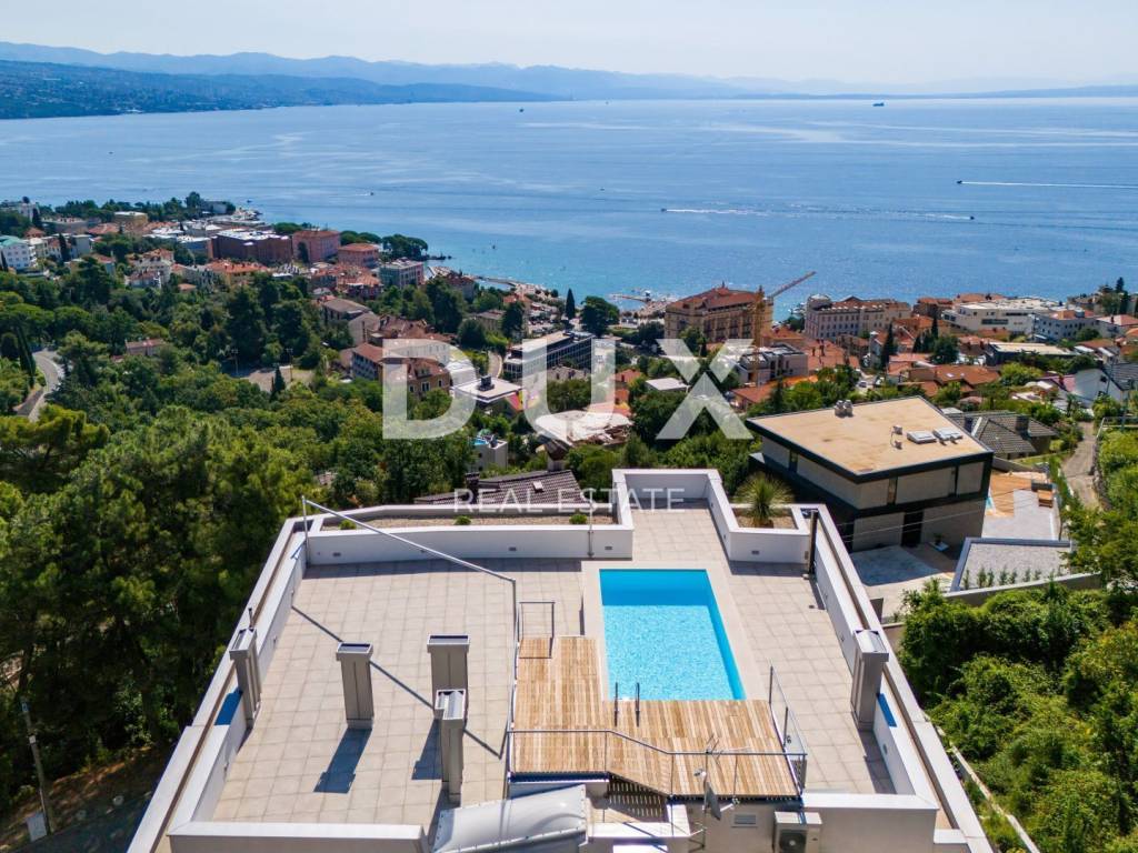 Wir vermitteln den Verkauf einer schönen modernen Wohnung P1 mit einer Fläche von 95,96 m2 oberhalb des Zentrums von Opatija mit Panoramablick auf das Meer, einer Terrasse, einem Swimmingpool, einem Aufzug und zwei Parkplätzen. Dieses moderne und exklusive Anwesen zeichnet sich durch seine Südausrichtung mit schöner Aussicht, Glasschiebewänden, die eine freie Sicht ermöglichen, und viel Licht das ganze Jahr über aus. Die Wohnung besteht aus zwei Schlafzimmern, zwei Badezimmern und einer Toilette, und das schöne offene Wohnzimmer ist mit dem Esszimmer und der Küche verbunden, und der gesamte Raum bietet Zugang zur Terrasse, wo Sie die schöne Aussicht auf das Blau genießen können Meer. Wir heben hervor: - fantastische SCHUCO-Aluminiumschreinerei - erstklassiges Parkett - elektrische Jalousien - hochwertige Sanitäranlagen - italienische Keramik - Sicherheitseingangstür - Aufzug - Gemeinschaftspool - energieeffiziente Bauweise und Isolierung Die Wohnung hat Zugang zum Gemeinschaftspool, Außerdem verfügt es über einen Aufzug und zwei Parkplätze, von denen sich einer in der Garage befindet und der andere nicht überdacht ist. Die Lage der Wohnung ist fantastisch: eine ruhige und friedliche Straße oberhalb des Zentrums von Opatija, nahe dem Strand und der Promenade Lungomare. Den Strand erreichen Sie zu Fuß in nur 8 Minuten, mit dem Auto dauert es tatsächlich nur eine Minute. Es ist wichtig darauf hinzuweisen, dass das Gebäude von grünem Wald umgeben ist. Es ist eine perfekte Gelegenheit, eine fantastische Immobilie in einer der schönsten Städte an der Adria zu kaufen. Ideal zum Wohnen, aber auch zur touristischen Vermietung oder Investition.