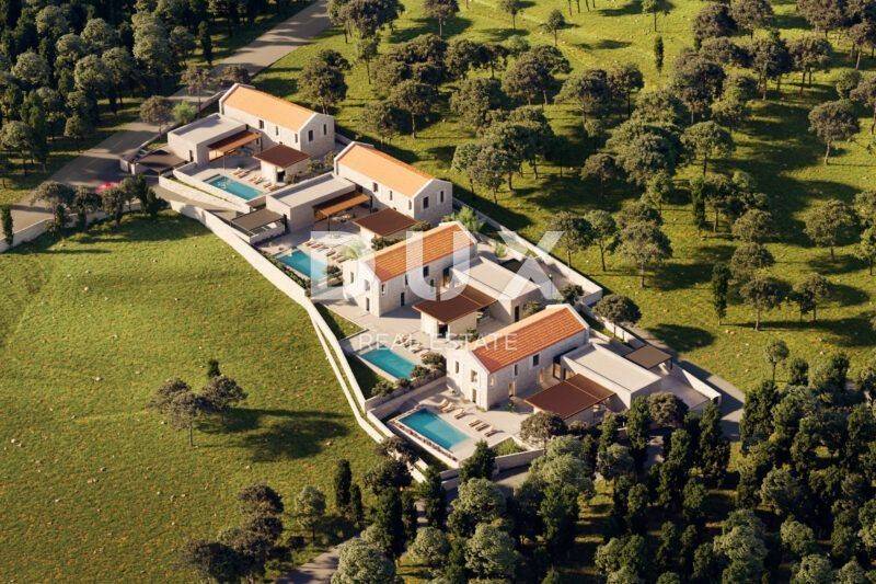 Wir präsentieren stolz ein neues Projekt exklusiver Villen, die auf ihre ganz besondere Art und Weise moderne Eleganz und mediterrane Tradition verbinden und eine einzigartige Gelegenheit für einen exklusiven Lebensstil schaffen. Sie befinden sich in einer malerischen kleinen Siedlung in der Nähe von Svetvinčent, die bekannt ist Aufgrund ihrer wunderschönen Landschaften, ihres kulturellen Reichtums und ihrer unglaublichen Gastronomie wird sie auch als kleine Toskana bezeichnet. Es handelt sich um ein luxuriöses Projekt aus vier Villen, die nicht nur Zuflucht vor der Hektik des modernen Lebens bieten, sondern auch einen unglaublichen Beweis für architektonische Lösungen darstellen. Mit bequemem Zugang zu den historischen Städten Istriens sowie kristallklaren Stränden versprechen diese Villen einen Lebensstil von unvergleichlicher Eleganz und Ruhe. Diese Villen wurden mit viel Liebe zum Detail und mit dem Ziel eines hohen Maßes an Eleganz und einer hervorragenden Verbindung zu Raum und Natur entworfen und stellen die ideale Lösung für alle dar, die auf der Suche nach dem Wow-Faktor und der Einzigartigkeit sind. Dabei handelt es sich um Villen, die nur 20 Minuten von der malerischen Stadt Rovinj, 30 Minuten vom Flughafen Pula und eine kurze Autofahrt von der unvermeidlichen Stadt Opatija entfernt sind. Nutzen Sie diese unglaubliche Gelegenheit und erleben Sie ein einzigartiges Erlebnis. Es ist sehr gut möglich, dass Ihre Suche nach der idealen Immobilie dort endet. OBJEKTBESCHREIBUNG: Von der sorgfältig durchdachten Anordnung, die im Einklang mit dem Raum und der Natur steht, bis hin zur erstklassigen intelligenten Technologieausstattung, die die Messlatte für Sicherheit und Zweckmäßigkeit des Hauses höher legt, wurde jedes Detail sorgfältig geplant, um ein unvergleichliches zu gewährleisten Wohnerlebnis mit hohem Komfort und Luxus. Die Villa verfügt über insgesamt 300 m2 Wohnfläche und bietet einen luxuriösen Wohnraum, der jeden Besucher sprachlos macht. Die Gesamtfläche der Villa ist in zwei Etagen aufgeteilt, Erdgeschoss + erster Stock. Beim Betreten der Villa werden wir zunächst von einem Vorraum mit Platz für einen Kleiderschrank begrüßt, der dann in einen Flur übergeht und den Raum im Erdgeschoss in zwei Teile teilt, ein privates Schlafzimmer und einen Teil für das tägliche Leben. Der für den Alltag vorgesehene Teil ist nach dem Open Space-Raumsystem ohne Trennwände gestaltet, wo Sie die Möglichkeit haben, Ihren Aufenthalt in einer komfortablen modernen Küche mit Kochinsel und anschließend in einem geräumigen Esszimmer zu verbringen, das für die ganze Familie ausreicht sowie ein geräumiges Wohnzimmer mit Kamin. Was den Aufenthalt in diesem Teil der Villa besonders macht, sind die Glaswände, mit deren Hilfe sich der Raum zum überdachten Außenbereich der Villa von insgesamt 100 m2 öffnet, komplett mit großzügigen Terrassen von 80 m2, einem großen Swimmingpool und angelegte Gärten mit Lavendel, Olivenbäumen und aromatischen Büschen, die einen Zufluchtsort für die Sinne schaffen. Der privatere Teil des Erdgeschosses besteht aus einem Schlafzimmer mit eigenem Bad, dann einem SPA-Bereich mit Sauna und Bad, von dem aus man einen herrlichen Blick auf die Natur und einen angelegten Garten hat. In diesem Teil des Erdgeschosses gibt es auch eine Gästetoilette, einen Technikraum und eine moderne Treppe, die in die erste Etage der Villa führt. Die erste Etage besteht aus drei komfortablen Schlafzimmern mit eigenem Bad, die durch einen geräumigen Flur verbunden sind. Jedes Schlafzimmer misst zusammen mit seinen Badezimmern 30 m2. Hohe Decken und Dachschrägen in den Zimmern schaffen mit natürlichem Licht in den Morgenstunden eine besondere Atmosphäre und verleihen dem Raum ein Gefühl von Ruhe und Luxus. Jedes Schlafzimmer verfügt außerdem über einen eigenen begehbaren Kleiderschrank sowie einen Schreibtisch oder Boudoirspiegel und eine Couch, die sich ideal zum Lesen und Entspannen eignet. Jedes der Badezimmer verfügt über eine ebenerdige Dusche, Doppelwaschbecken für Sie und Ihn, eingebaute Spiegel und separate Toiletten mit Stauraum. Jedes Badezimmer ist über die gesamte Höhe mit Glas mit einer transparenten Folie ausgestattet, die ausreichend Tageslicht in das Badezimmer bringt und dennoch vor Blicken von außen verborgen bleibt. Einfach ausgedrückt sind die Villen so konzipiert, dass sie ihren Besitzern ein hohes Maß an Komfort, maximale Privatsphäre und ein beneidenswertes Maß an Luxus bieten, und das alles bei einem hohen Standard an Lebensqualität und Sicherheit. GELÄNDEBESCHREIBUNG: Gönnen Sie sich eine Chance und genießen Sie die Sonne Istriens mit geräumigen Wohnbereichen im Freien, darunter Terrassenlandschaften mit Lavendel- und Olivenbäumen, einem großen Swimmingpool und einer Liegewiese, alle mit schöner Aussicht und einer engen Verbindung zur Natur. Die Villa befindet sich auf einem Grundstück von 1196 m und verfügt über eine sorgfältig durchdachte Anordnung, die die Villa mit dem Raum und der Natur, die sie umgibt, verbindet. Besonderes Augenmerk wurde auf den Außenbereich gelegt, so dass jede der Terrassen eine Südwestausrichtung mit Blick auf das Tal und das Dorf und gleichzeitig einen Blick auf das Meer mit Sonnenuntergang hat. Die Hauptterrasse im Garten der Villa ist direkt vom Wohnzimmer aus zugänglich, wodurch ein perfekter Zusammenhalt von Außen- und Innenleben erreicht wird. Während Sie sich im SPA-Bereich der Villa ausruhen und entspannen, haben Sie auch die Möglichkeit, einen Schritt in Richtung Garten und Poolbereich zu machen. Der Wohnbereich im Freien ist vollständig überdacht, sodass Sie ihn bei jedem Wetter nutzen können. Es umfasst einen Bereich zum Sitzen und Unterhalten, ein Esszimmer und eine Außenküche mit eingebautem Grill und einer Kücheninsel, ideal zum Verbringen von Zeit mit Freunden und der Familie. Den äußersten Teil des Gartens nimmt ein großzügiger beheizte