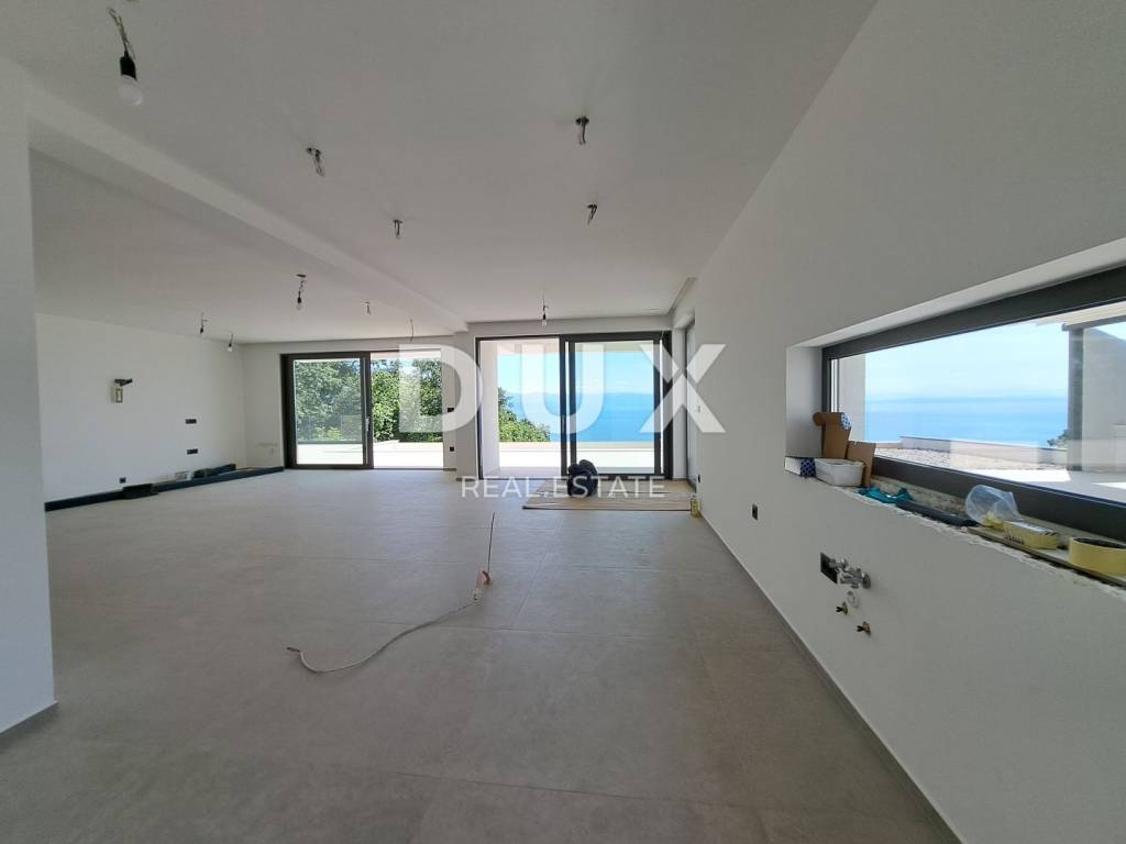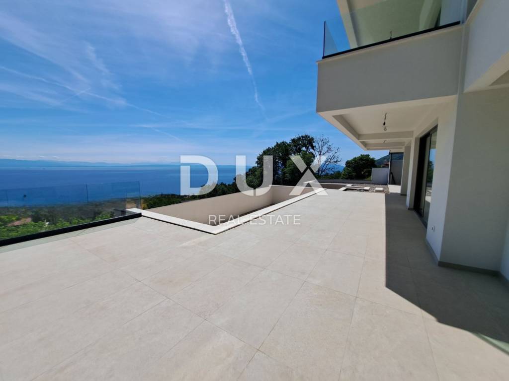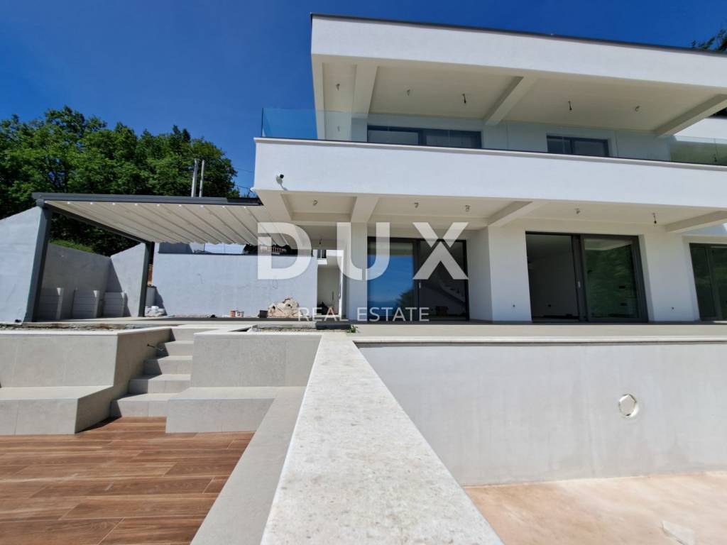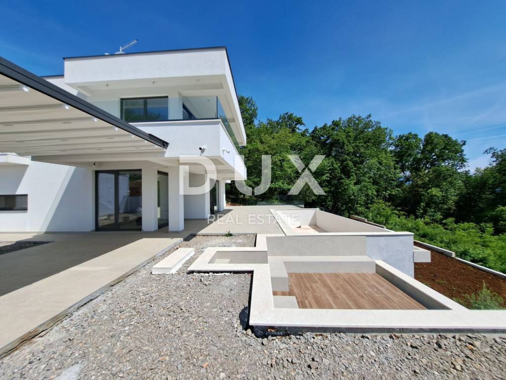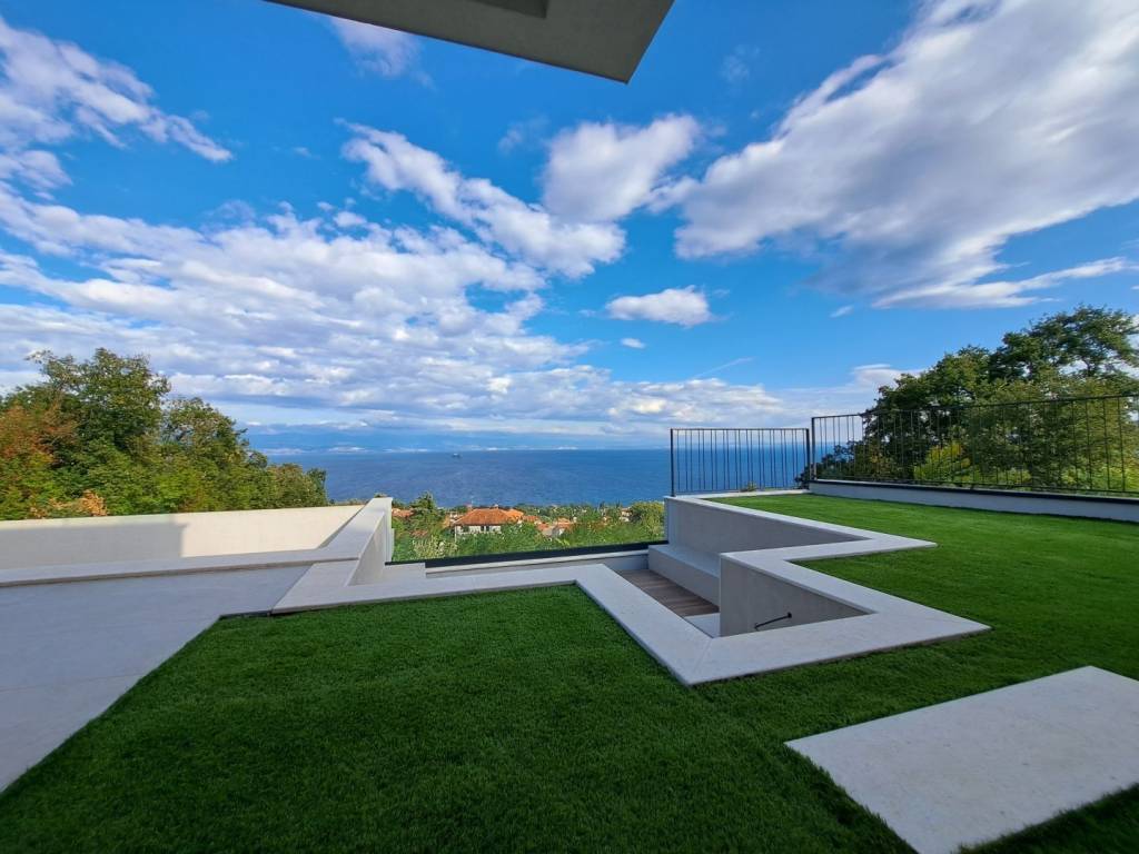 Wir freuen uns, Ihnen eine luxuriöse Villa auf einem 900 m großen Grundstück präsentieren zu können. Im geschmackvoll eingerichteten Garten gibt es eine Terrasse mit einem zehn Meter langen Infinity-Pool und einer Toilette, einer Feuerstelle und einer Sommerküche. Auf der gleichen Ebene haben wir einen geräumigen offenen Raum mit Küche, Esszimmer und Wohnzimmer sowie einem Schlafzimmer. Im ersten Stock befinden sich drei weitere Schlafzimmer. Selbstverständlich verfügt jedes der Schlafzimmer über ein eigenes Bad und einen Balkon mit freiem Panoramablick. Die Villa ist gut gebaut und luxuriös ausgestattet, und alle eingebauten Materialien sowie Boden- und Wandbeläge entsprechen den höchsten Standards: Fassadensteinwolle mit einer Dicke von 10+ cm, Fußbodenheizung mit Wärmepumpen, hochwertige Aluminiumschreinereiarbeiten. Dieses einzigartige Anwesen an der Riviera von Opatija hebt die Definition von Luxus auf ein noch höheres Niveau. Die Villa befindet sich in der Endphase der Einrichtung, was dem neuen Eigentümer die Möglichkeit gibt, sie nach seinem Geschmack einzurichten. Es ist ideal für ein luxuriöses Familienleben, eignet sich aber auch als Investition in Form von Elite-Tourismus. Das Haus ist nach Süden ausgerichtet und bietet einen herrlichen Panoramablick auf die gesamte Kvarner-Bucht und die Inseln! Auf dem Gartengrundstück besteht die Möglichkeit, ein Nebengebäude (Taverne, Fitnessstudio etc.) mit einer Fläche von bis zu 50 m zu errichten. Wir freuen uns, dass Sie sich für die Objekte in unserem Angebot interessieren. Für weitere Informationen können Sie uns gerne kontaktieren. Lovran ist eine Stadt mit einer langen und reichen Vergangenheit und einer hundertjährigen Tradition im Tourismus. Seinen Namen verdankt es dem Lorbeer (Laurus nobilis), der in den immergrünen Wäldern der Stadt und ihrer Umgebung reichlich wächst. Lovran verfügt über ein reiches historisches Erbe, eine jahrhundertealte touristische Tradition, eine erhaltene Natur und eine gebaute Infrastruktur, die es dem Tourismus mit nachhaltiger Entwicklung und Einhaltung aller ökologischen Standards ermöglicht, wieder in Schwung zu kommen. Ein gesundes Klima, üppige mediterrane Vegetation und eine günstige geografische Lage haben die starke Entwicklung des Tourismus ermöglicht. Lovran ist neben Opatija der wichtigste Ort an der berühmten Riviera.
