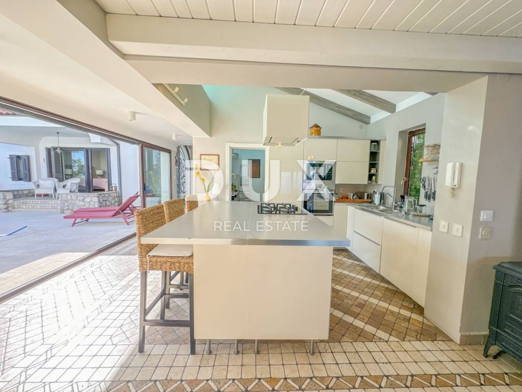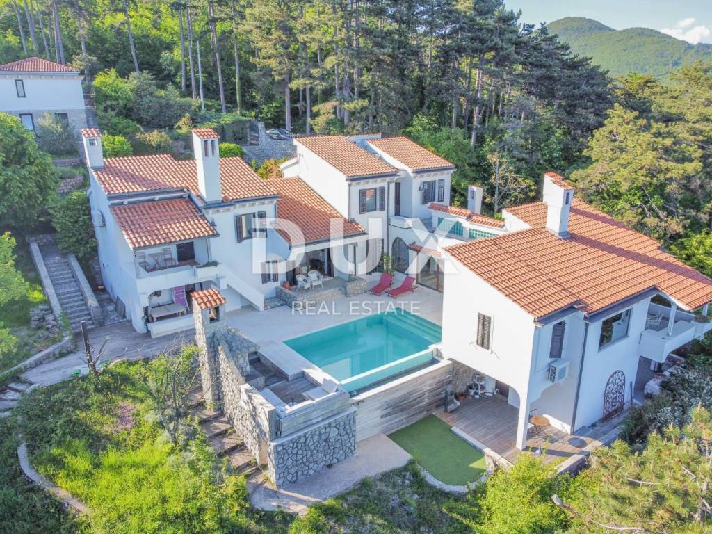 Das exklusive Angebot umfasst eine private Villa mit Pool, 5 Schlafzimmern, Meerblick und Parkplatz in einem ruhigen Dorf im Grünen. Dies ist eine fantastische Villa, die einen angenehmen Aufenthalt für eine große Familie bietet, und es besteht auch die Möglichkeit einer touristischen Vermietung, da sie aus 5 Schlafzimmern besteht, von denen jedes eine schöne Aufteilung und Zugang zu einem Balkon oder einer Terrasse hat sind zudem sehr gemütlich und freundlich eingerichtet. Darüber hinaus verfügt die Villa über 5 dezent eingerichtete Badezimmer, die absolute Privatsphäre und Komfort bieten. Wir heben den schönen offenen Hauptraum hervor, das Wohnzimmer, das sich ideal für mehr Aktivitäten als nur geselliges Beisammensein eignet und mit einem geräumigen Esszimmer und einer Küche verbunden ist, während der gesamte Raum einen schönen und freien Blick auf die Kvarner-Bucht bietet Im Speisesaal gibt es einen bezaubernden Balkon, auf dem Sie sich von der Aussicht erholen können. Die wunderschön dekorierte und voll ausgestattete Küche führt auf eine Terrasse mit Swimmingpool. Neben dem offenen Hauptwohnzimmer mit Küche und Esszimmer verfügt die Villa über ein weiteres separates Wohnzimmer mit Küche und Esszimmer, das viel Komfort bietet. Wunderschöne Vegetation und Ruhe mit Vogelgezwitscher und ein noch schönerer Blick auf die Kvarner-Bucht sind wirklich die Trümpfe dieser privaten Villa mit Pool. Darüber hinaus heben wir den idyllischen Grill und den Gemeinschaftsbereich neben dem Pool hervor . Die Villa verfügt außerdem über einen Parkplatz mit 2 Garagenplätzen von 36 m2 und 2 nicht überdachten Stellplätzen. Dies ist eine perfekte Gelegenheit, eine Villa an der Riviera von Opatija mit einer wunderschönen Aussicht zu kaufen, die sich sowohl für komfortables Wohnen als auch für die touristische Vermietung eignet. Sehr geehrte Kunden, die Vermittlungsprovision wird gemäß den Allgemeinen Geschäftsbedingungen berechnet. https://www.dux-nekretnine.hr/opci-uvjeti-poslovanja