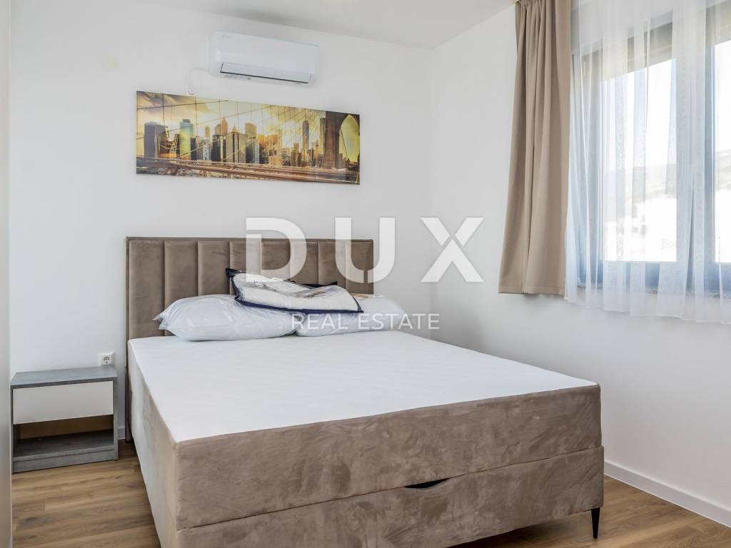 Zu vermieten ist eine Luxusvilla mit Panoramablick auf das Meer in Crikvenica. Das Gebäude ist in einem modernen Stil gebaut und mit hochwertigen Möbeln ausgestattet. Im Erdgeschoss gibt es eine Toilette und einen offenen Bereich mit Küche, Esszimmer und Wohnzimmer, von dem aus man durch eine Glaswand auf eine Terrasse und ein Sonnendeck mit Swimmingpool gelangt. Im Zwischengeschoss befindet sich ein Zimmer mit eigenem Bad und im ersten Stock drei Schlafzimmer mit eigenem Bad und einer Terrasse mit Meerblick. Das Gebäude verfügt über ein weiteres Zwischengeschoss, in dem sich ein Zimmer mit Bad und ein kleiner Balkon befinden. Die Warmwasserbereitung erfolgt über Sonnenkollektoren, die Beheizung des Gebäudes erfolgt über eine Fußbodenheizung. Das Gebäude verfügt über eine Garage mit zwei Stellplätzen. Sehr geehrte Kunden, die Vermittlungsprovision wird gemäß den Allgemeinen Geschäftsbedingungen berechnet. https://www.dux-nekretnine.hr/opci-uvjeti-poslovanja