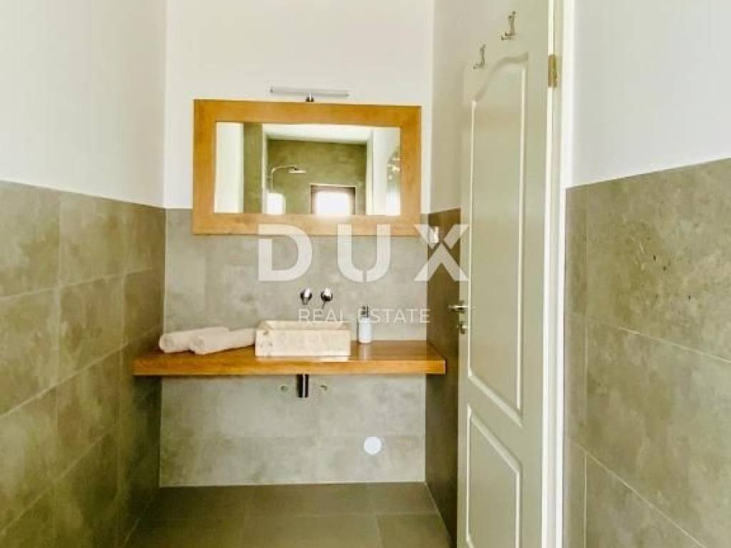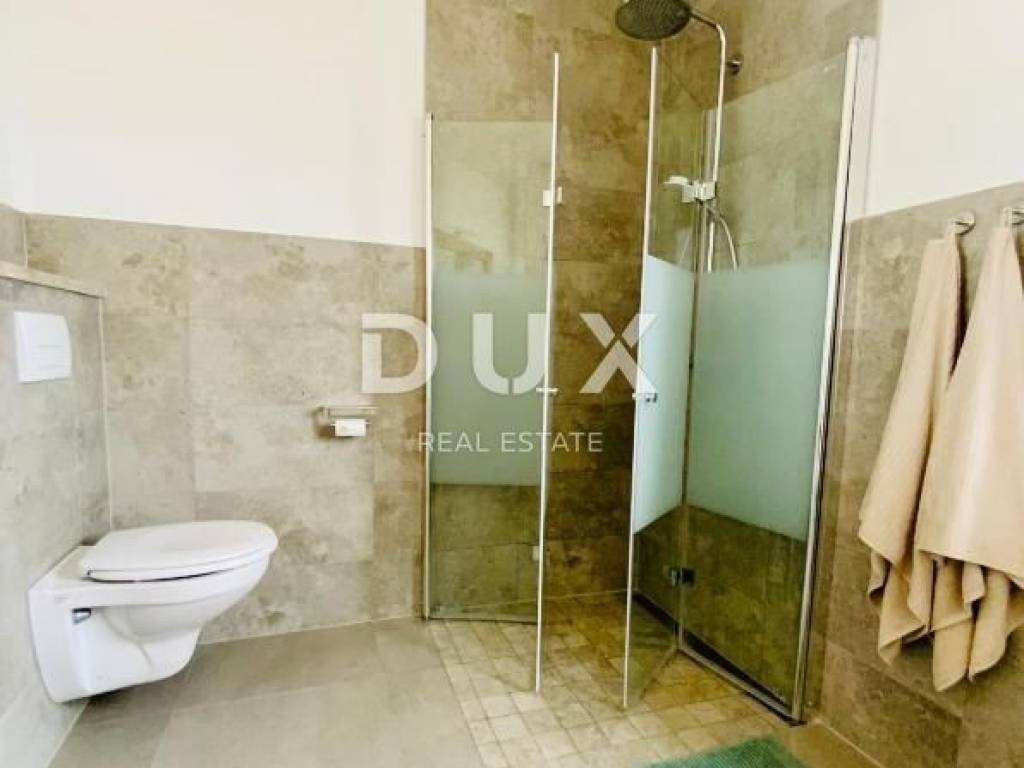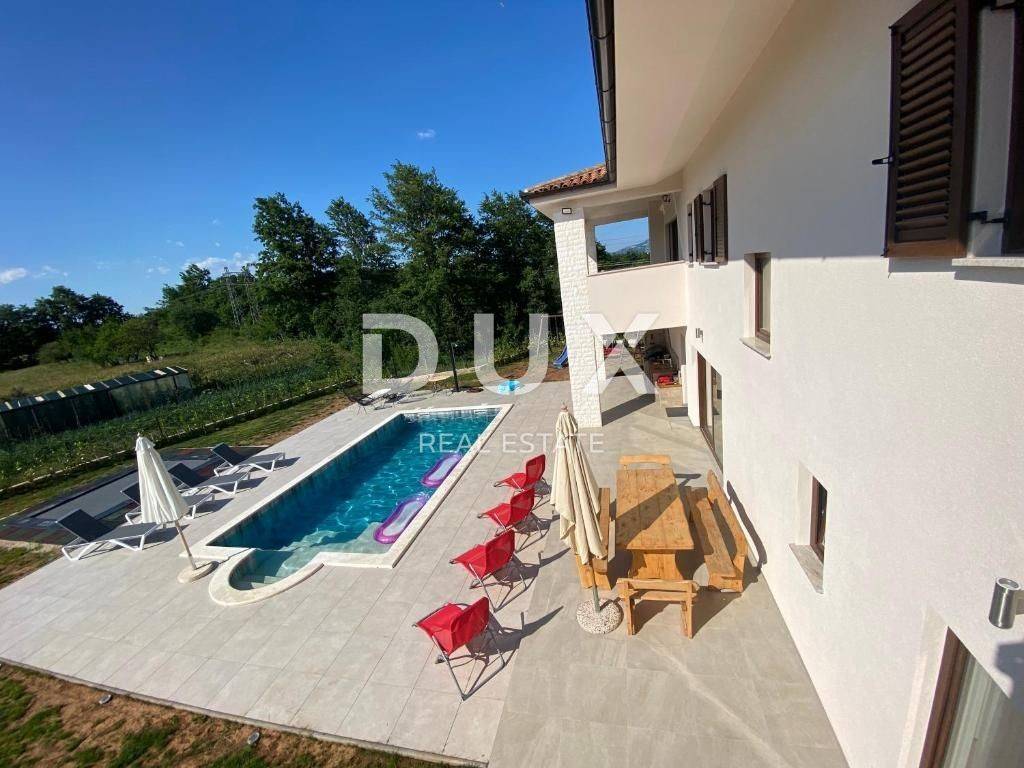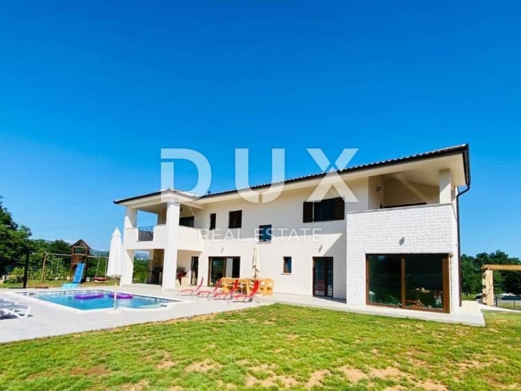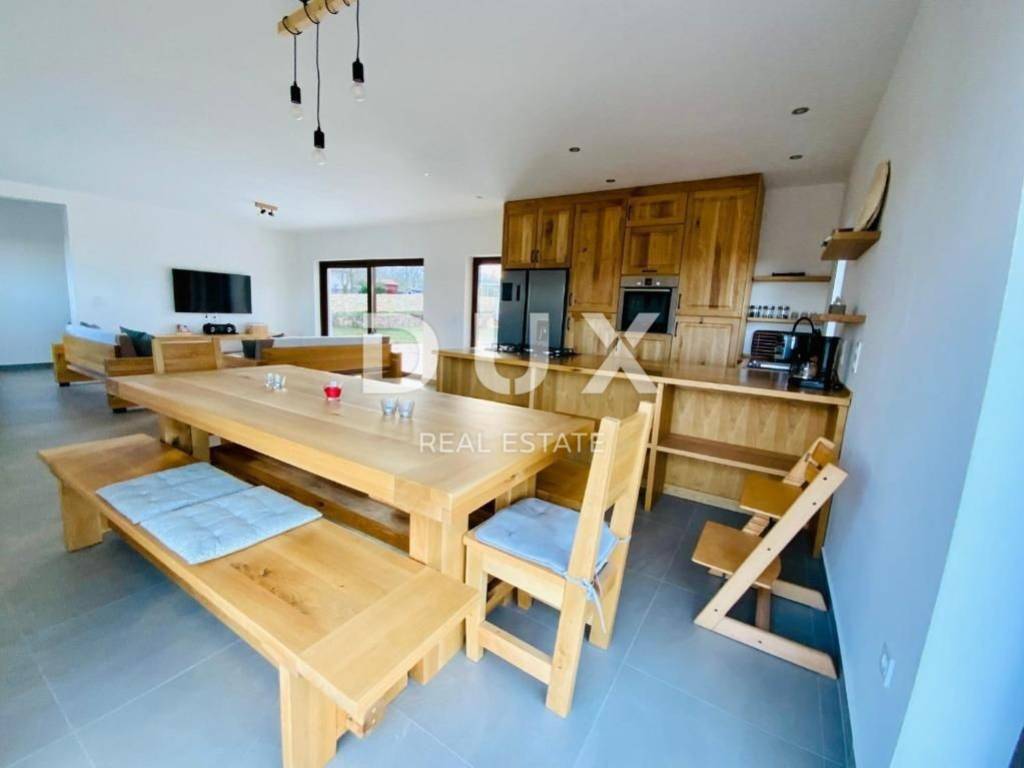 Es handelt sich um eine hochwertige, großzügige Villa bestehend aus insgesamt 250 m2 Wohnfläche, die auf zwei Etagen aufgeteilt ist. So befindet sich im Erdgeschoss beim Betreten der Villa eine Eingangshalle, die den privaten Bereich der Villa vom Raum des Alltags trennt. Im Wohnzimmer gibt es einen größeren offenen Raum mit hoher Decke, der das Wohnzimmer mit Esszimmer und eine moderne Küche aus handgefertigtem Massivholz beherbergt. Der gesamte Raum ist durch Glaswände von natürlichem Sonnenlicht durchflutet, hinter dem sich ein großzügiger Garten verbirgt, in dessen Mittelpunkt sich ein Swimmingpool mit Liegewiese befindet. Außerdem gibt es im Erdgeschoss ein Schlafzimmer mit Bad, sowie ein Gästebad und einen Abstellraum. Eine Innentreppe führt in die obere Etage, wo sich 3 weitere Schlafzimmer befinden, die jeweils über ein eigenes Badezimmer verfügen, sowie einen Ausgang zur Terrasse mit Panoramablick auf das Grün und den Berg Učka. Auf dem bereits erwähnten angelegten und umzäunten weitläufigen Garten von 1340 m2 gibt es einen privaten Swimmingpool, umgeben von Liegestühlen und einem Bereich zum Sitzen und Sonnenbaden. Es gibt auch eine überdachte Terrasse mit einem Außentisch und einem Grill. Ebenso gibt es vor dem Haus genügend Parkplätze für Ihre Haustiere sowie einen Platz für die Bewirtung von Freunden und Familie. Die Lage dieser Villa ist ideal für die Erkundung der Umgebung und der vielen Einrichtungen, die sie bietet, von Restaurants, Tavernen, Promenaden, Radwegen und dergleichen. Die Stadt Labin bietet eine reiche Geschichte und Kultur, während Rabac für seine wunderschönen Strände und das kristallklare Meer bekannt ist. Sie können die umliegenden Sehenswürdigkeiten erkunden, verschiedene Wassersportaktivitäten genießen oder einfach in der Ruhe dieser wunderbaren Unterkunft entspannen. Für weitere Informationen, Fragen oder den Wunsch, einen Besichtigungstermin zu vereinbaren, können Sie sich gerne an uns wenden. Sehr geehrte Kunden, die Vermittlungsprovision wird gemäß den Allgemeinen Geschäftsbedingungen berechnet. https://www.dux-nekretnine.hr/opci-uvjeti-poslovanja