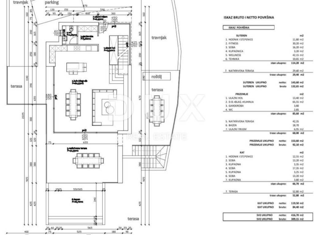 Sehr geehrte Kunden, die Agenturprovision wird gemäß den Allgemeinen Geschäftsbedingungen www.dux-nekretnine.hr/opci-uvjeti-poslovanja berechnet
